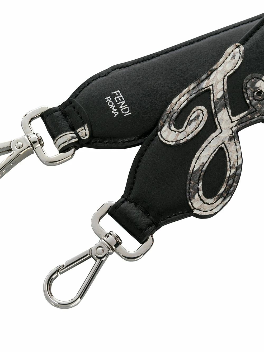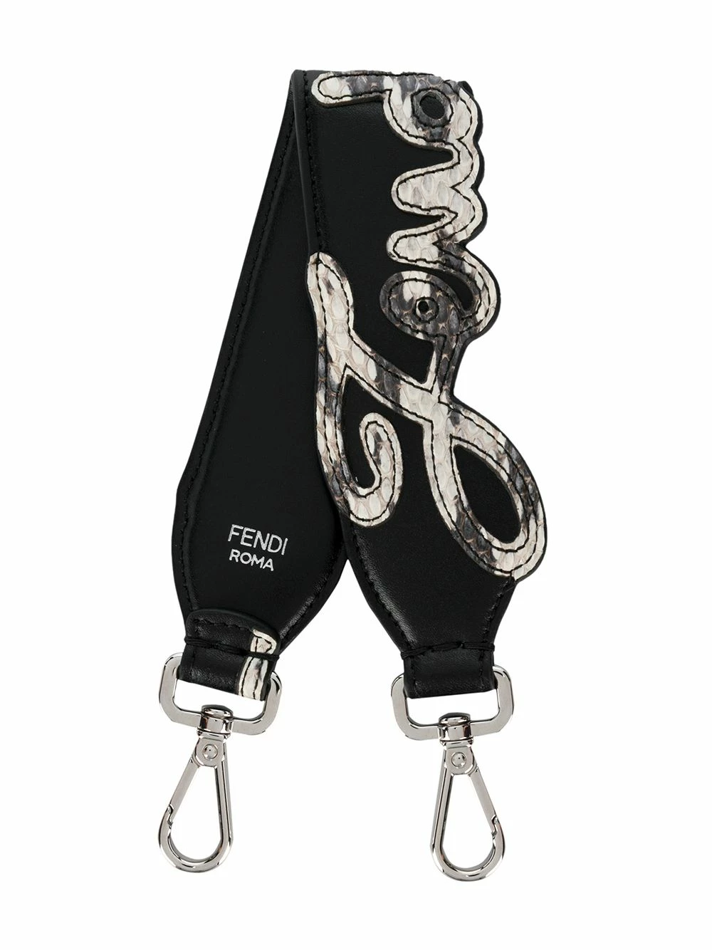 Fendi is famous for its trendsetting and splendid bags, that have become staple pieces for women around the world. By offering modern designs with a sartorial elegance, the brand has created bags that are suitable for every possible scenario. This black leather branded shoulder strap from Fendi features silver-tone hardware and an embroidered logo to the front.