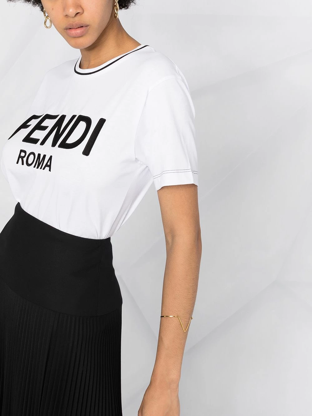 Spell out your love for Fendi. Have it emblazoned in embroidery across this cotton T-shirt. Speaks for itself.