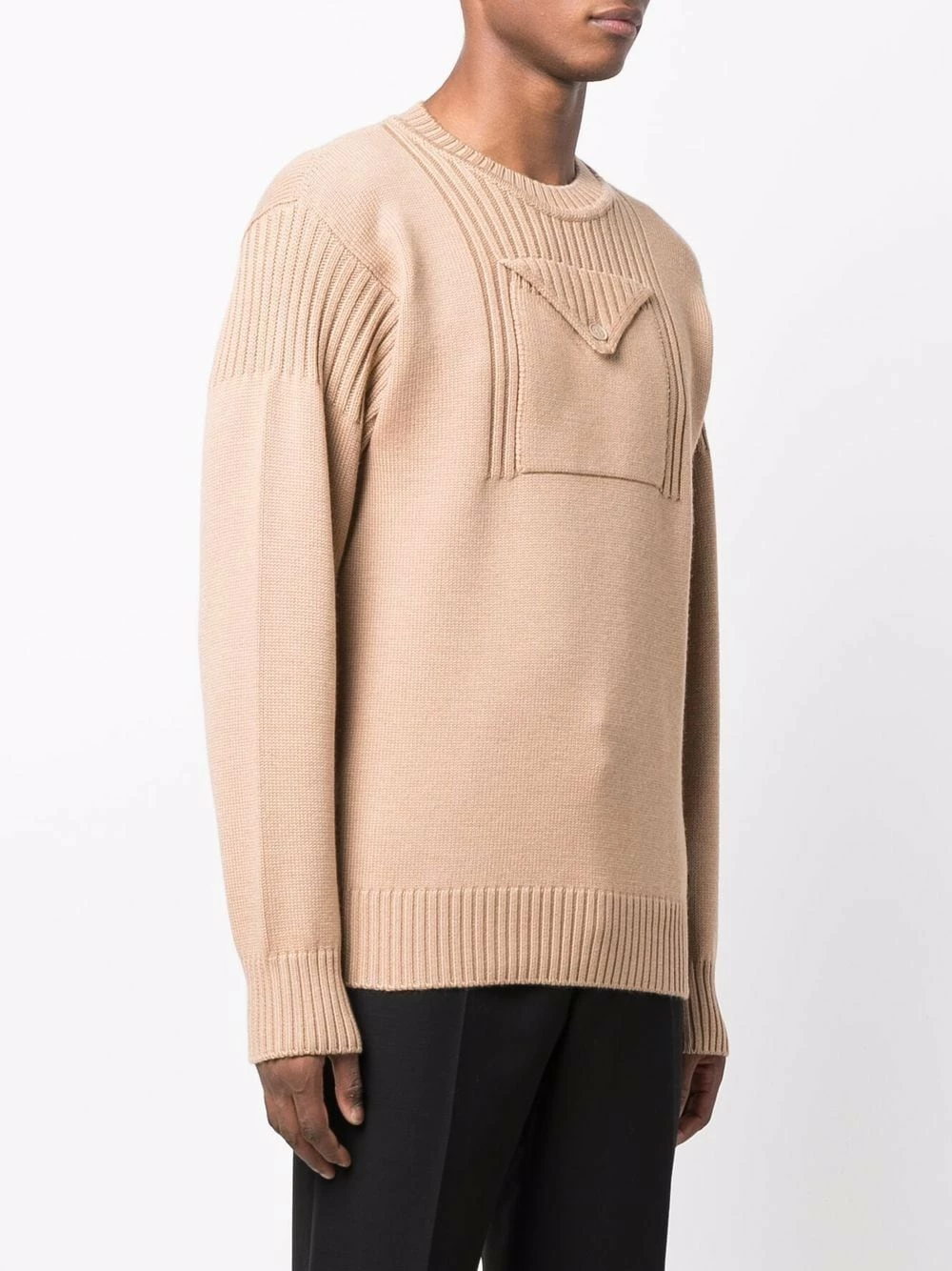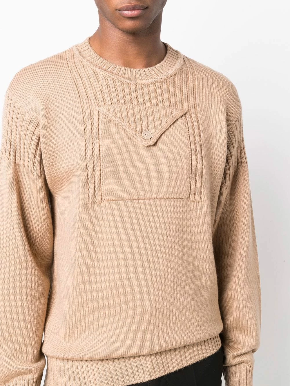 Fendi’s knitted jumper perfectly combines practicality and style in this flap pocket jumper for AW21. Produced from light brown virgin wool, the Italian-crafted piece is finished with distinctive ribbed trims.