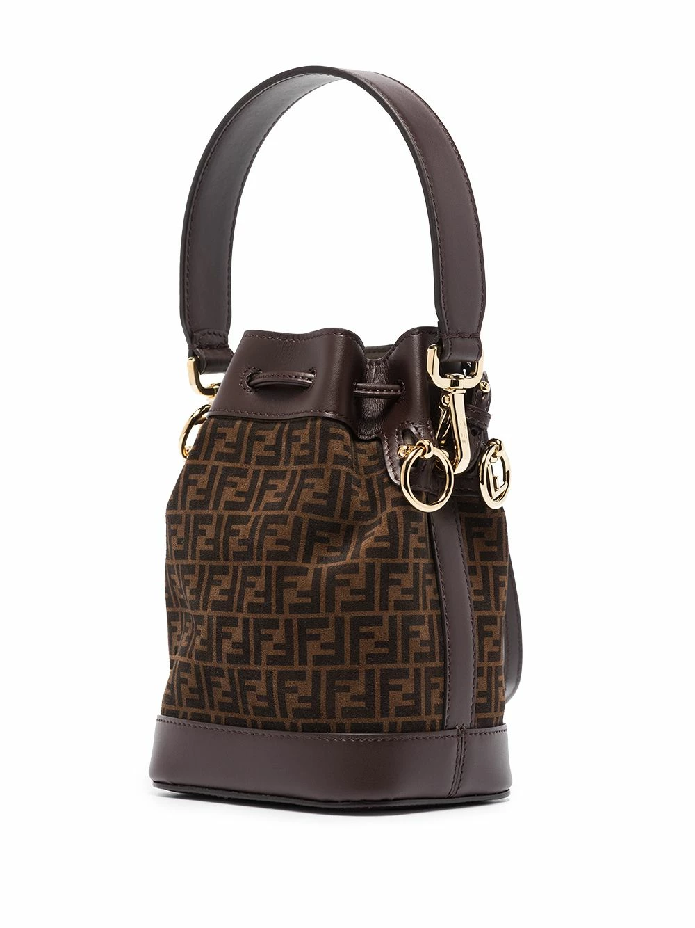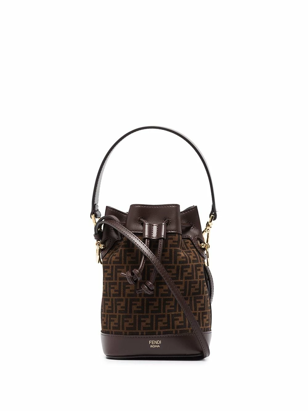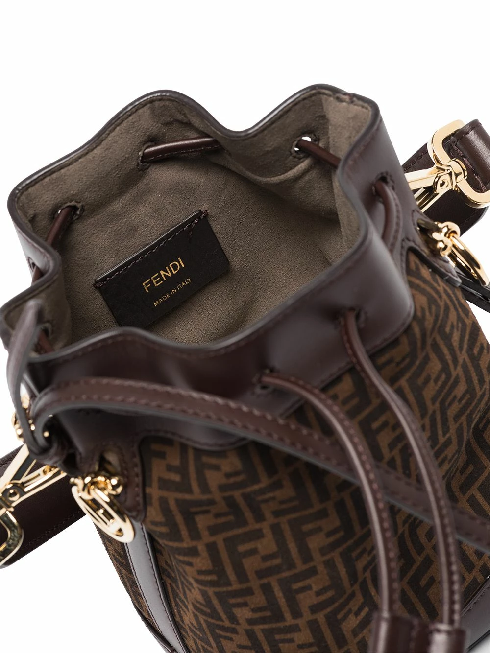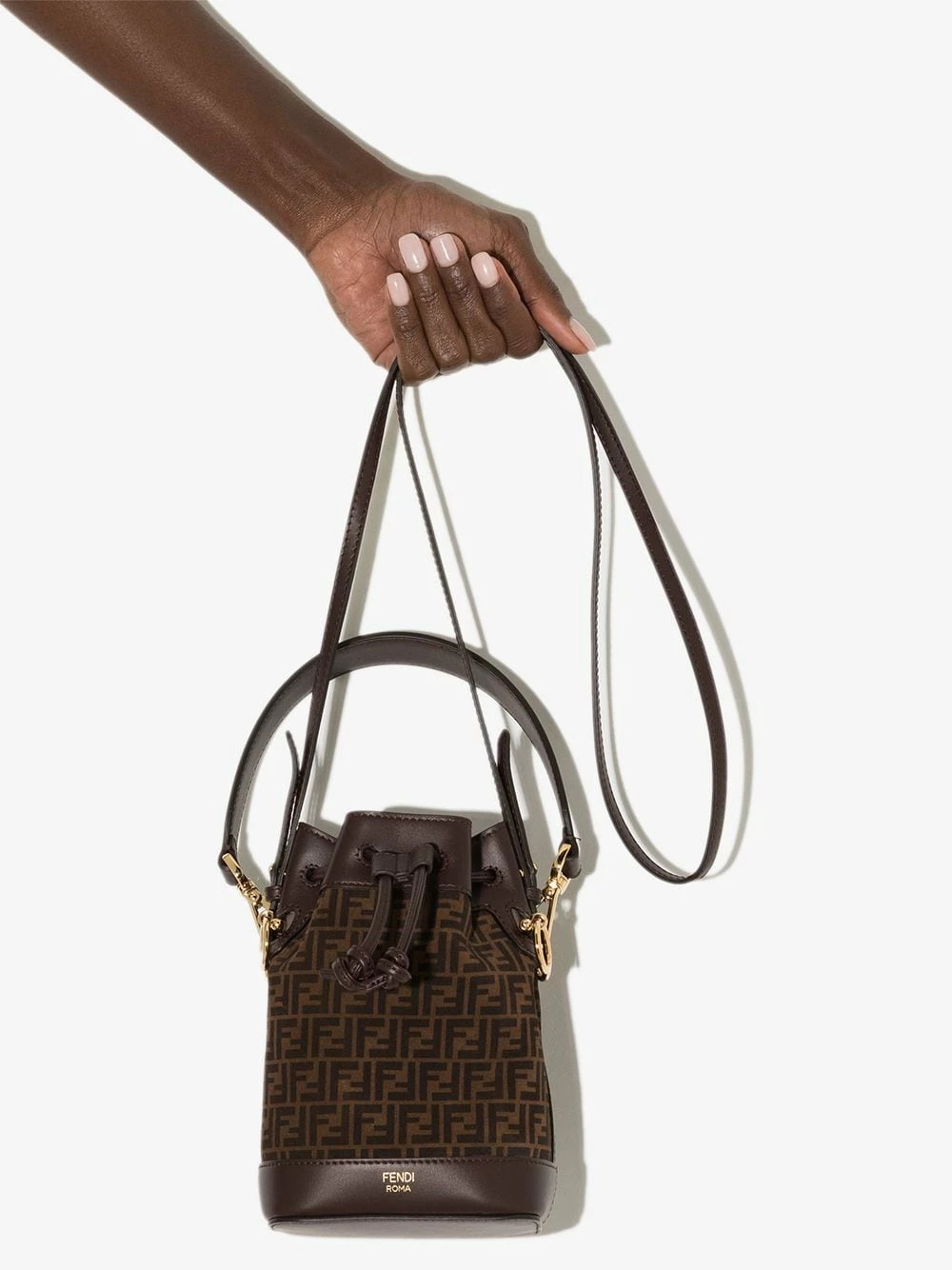 First seen in 1965, Fendi’s iconic FF motif takes the focus on this mini Mon Tresor bag. In dark tones of brown, it is complemented by the piece’s gold-tone hardware.