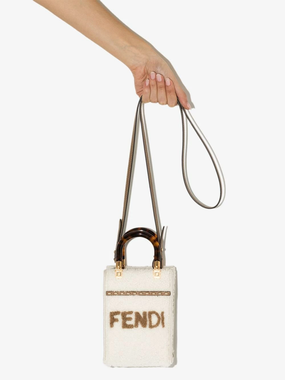 Boasting a compact design, this Sunshine tote from Fendi is given a contemporary touch thanks to the logo lettering at the front. This stands out against the piece’s white hue, adding a focal point to the look.
