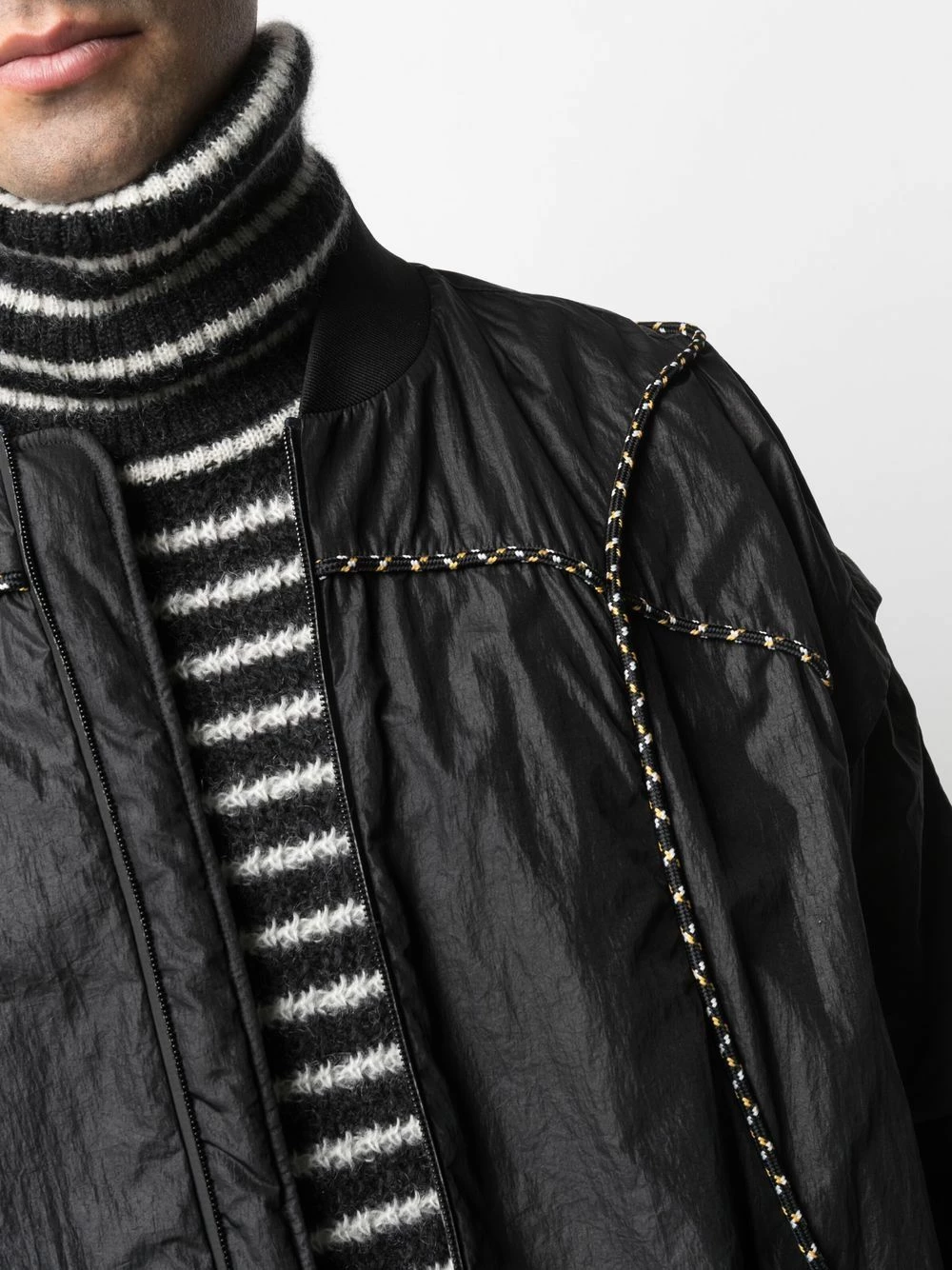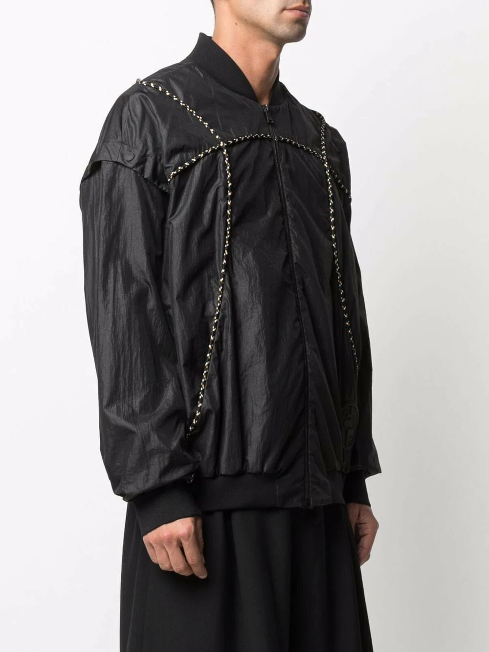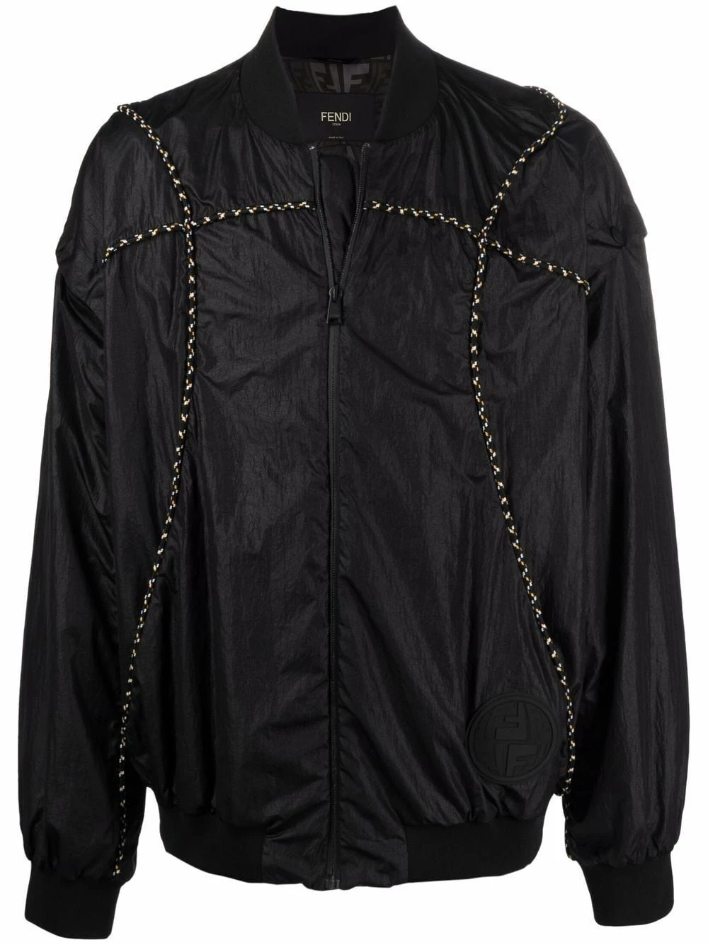 Providing style with versatility. This black bomber jacket from Fendi is trimmed with rope detailing and has detachable sleeves, so it can be worn throughout the seasons.