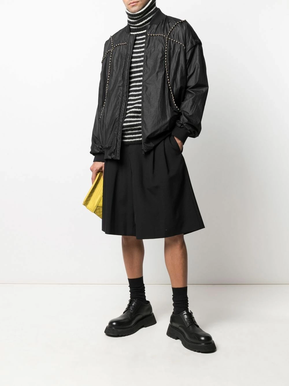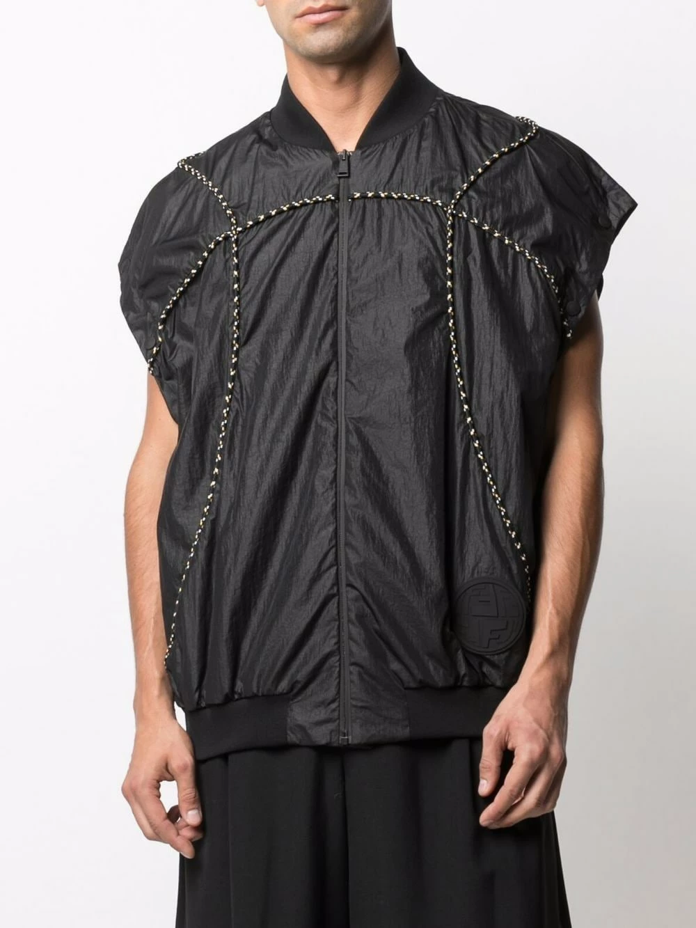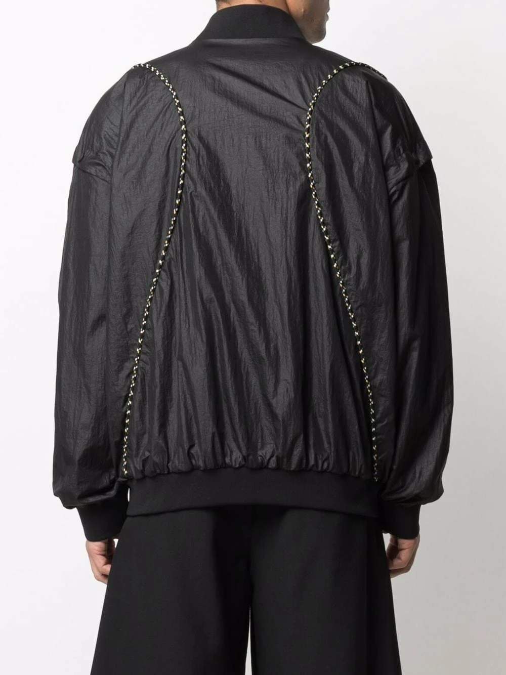 Providing style with versatility. This black bomber jacket from Fendi is trimmed with rope detailing and has detachable sleeves, so it can be worn throughout the seasons.