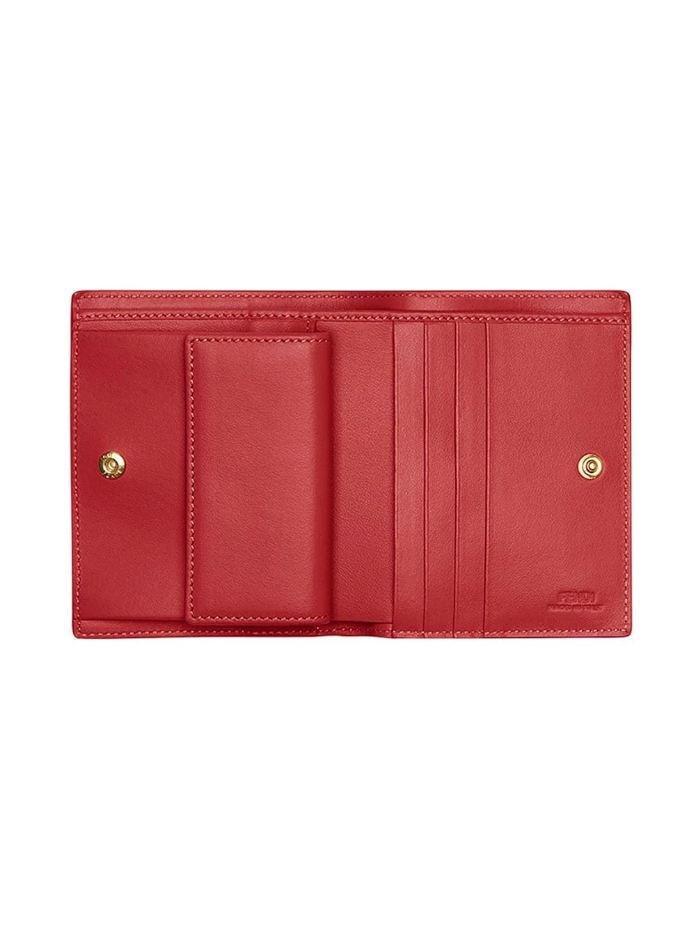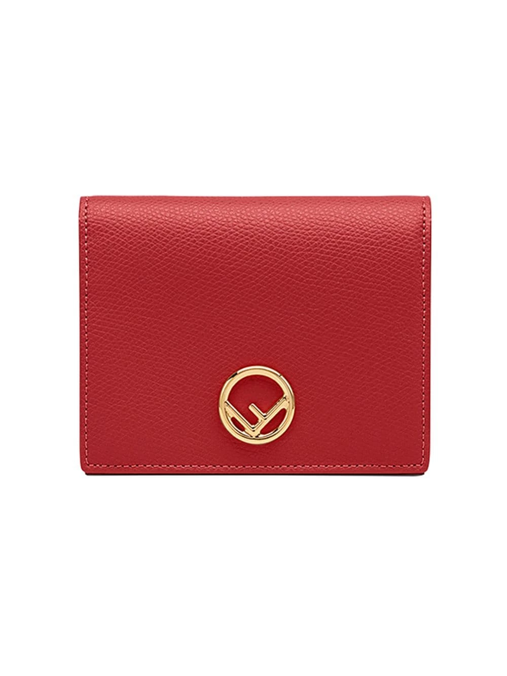 Fendiβs accessories are ideal for the modern woman. Made for confident and trendsetting fashion lovers, the brandβs wallet range is a perfect choice for that person that wants to add a bit of fun and class to their busy and cosmopolitan life. This red calf leather F is Fendi compact bi-fold wallet features a press stud fastening, a billfold compartment, multiple interior card slots, a coin pocket, a front logo plaque and gold-tone hardware.