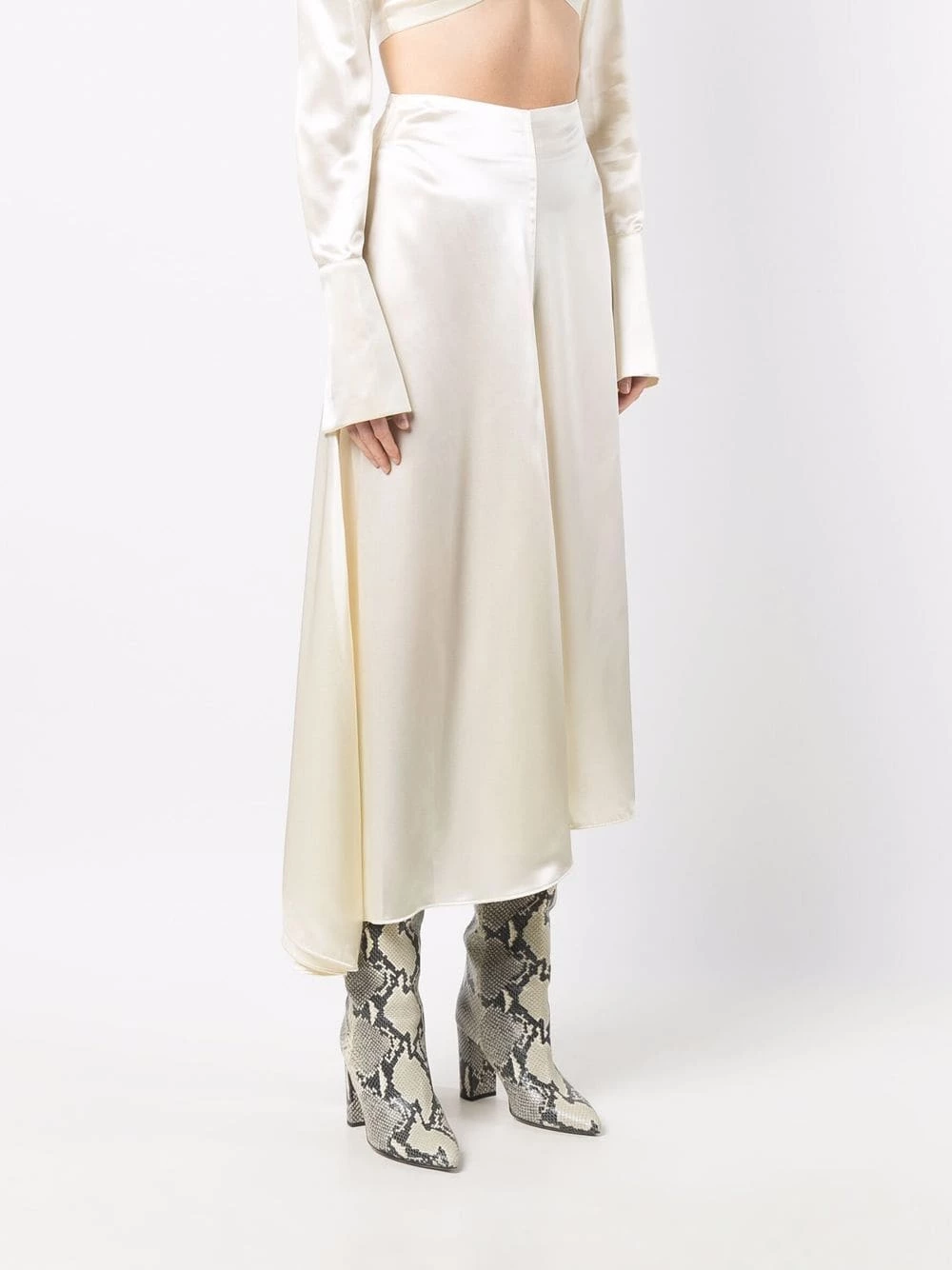 Fendi delivers an ethereal design with this asymmetric skirt. It features a satin construction that, coupled with an asymmetric hem, creates a flowy silhouette.