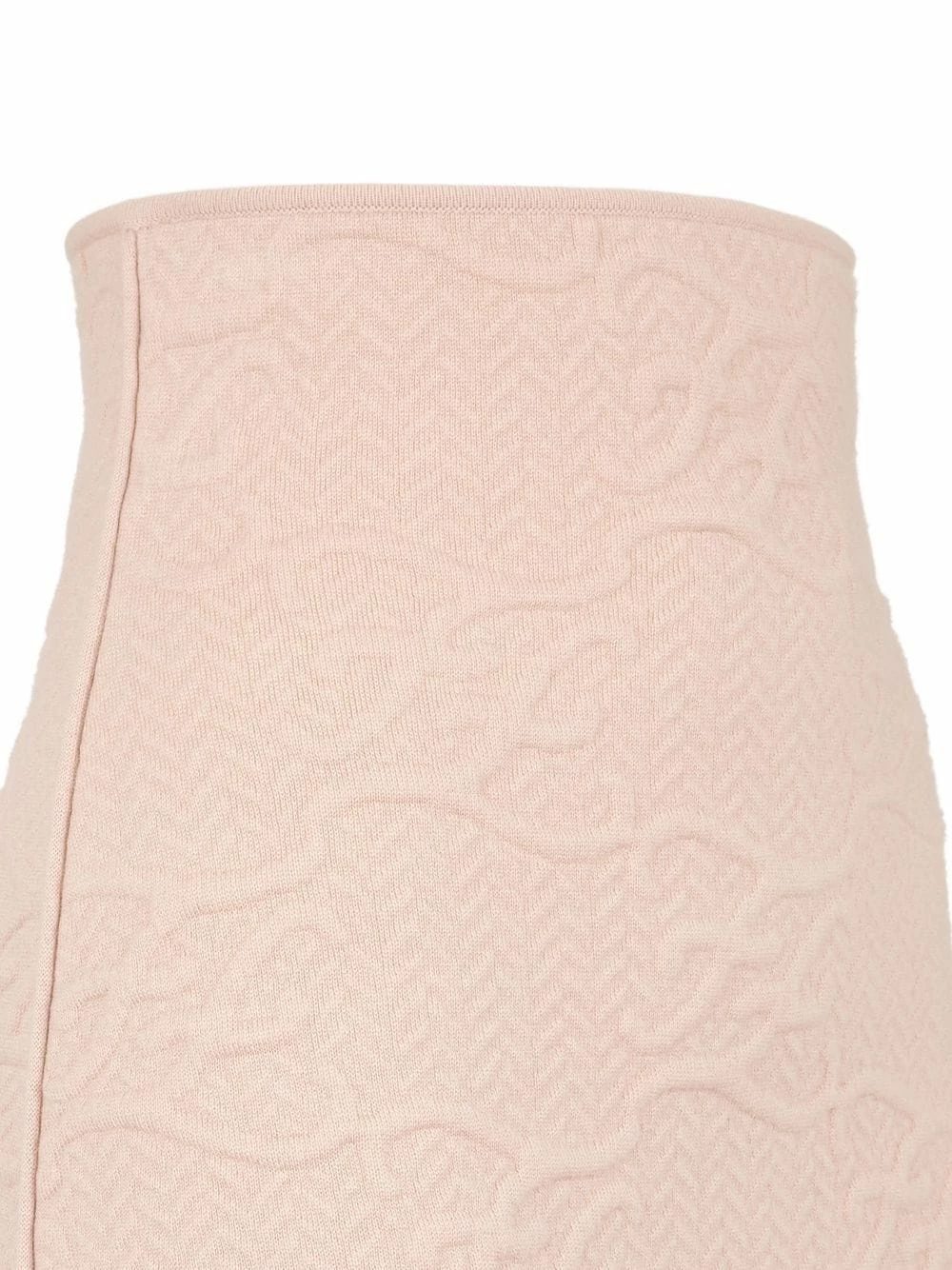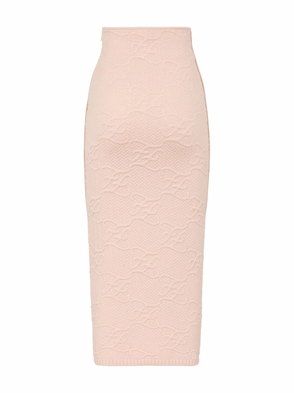 As its name implies, the FF Karligraphy motif was designed by Karl Lagerfeld, former creative director of Fendi. First seen in 1981, the logo is brought back in the house’s AW21 collection. In a fitted high-waist silhouette, this skirt is detailed with the iconic monogram.