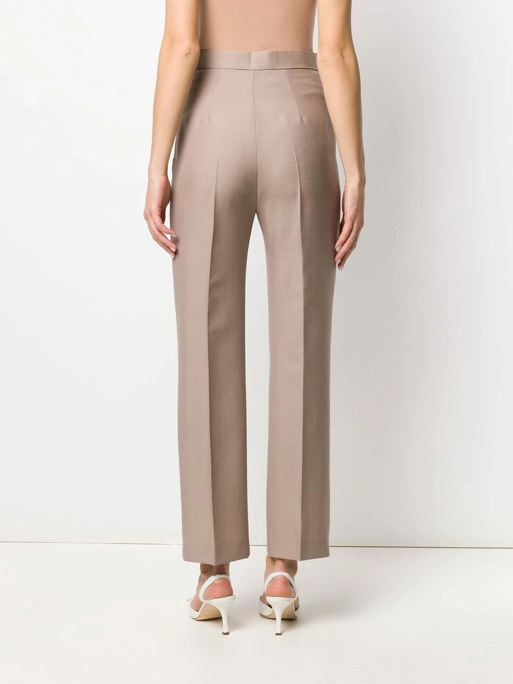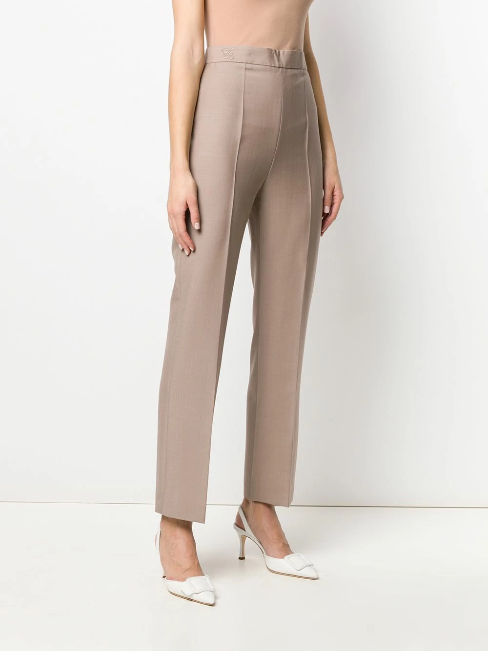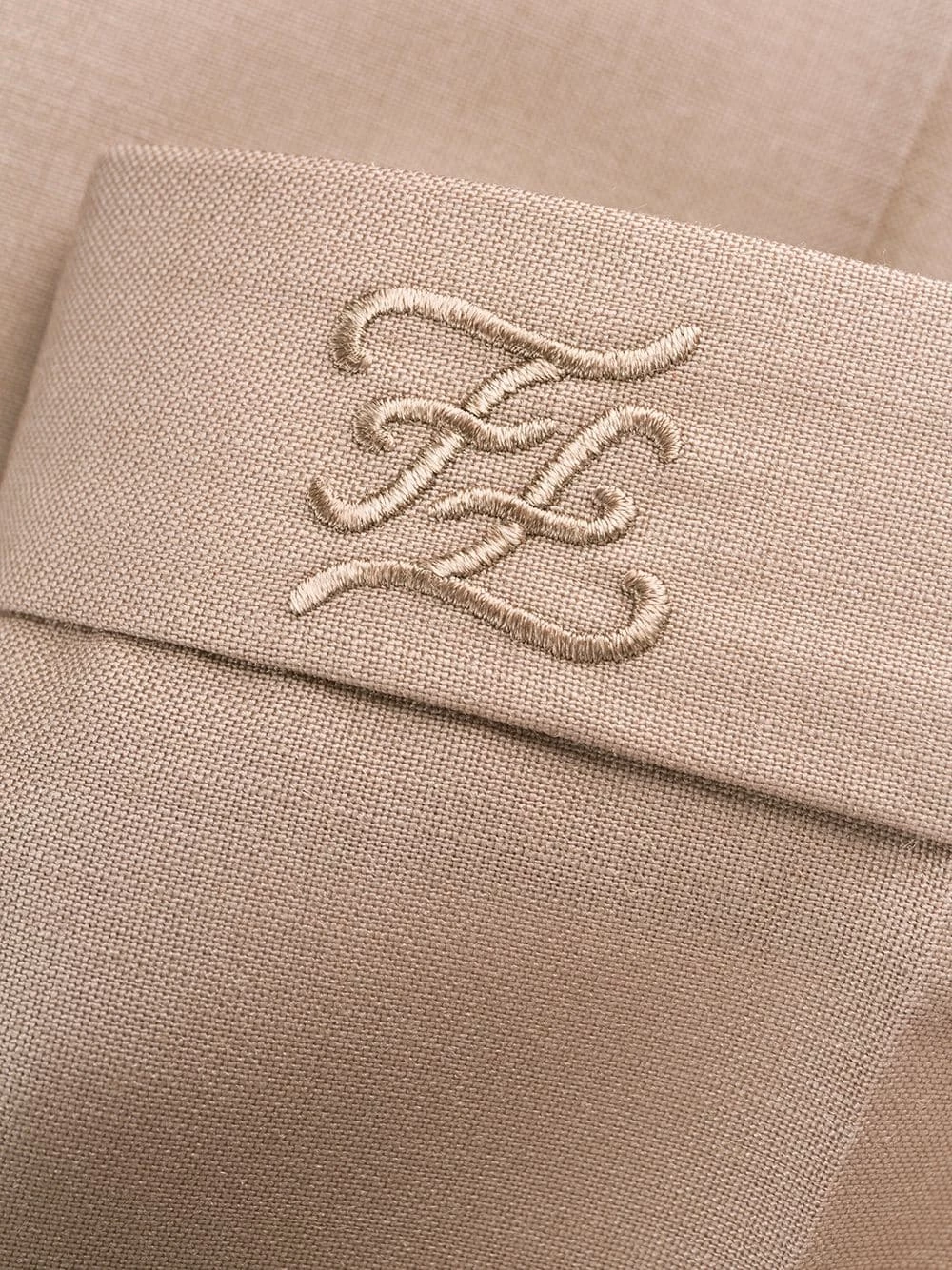 There’s nothing more powerful than an expertly cut, tailored fit pair of trousers. Something Italian designer Fendi knows all too well and has mastered with these beige mohair wool blend tailored trousers. Leaving the iconic mark with the embroidered FF signature to the waistband. Featuring a fitted waist, an embroidered logo to the front, a side zip fastening, a tailored design and a pressed crease to the front and back.