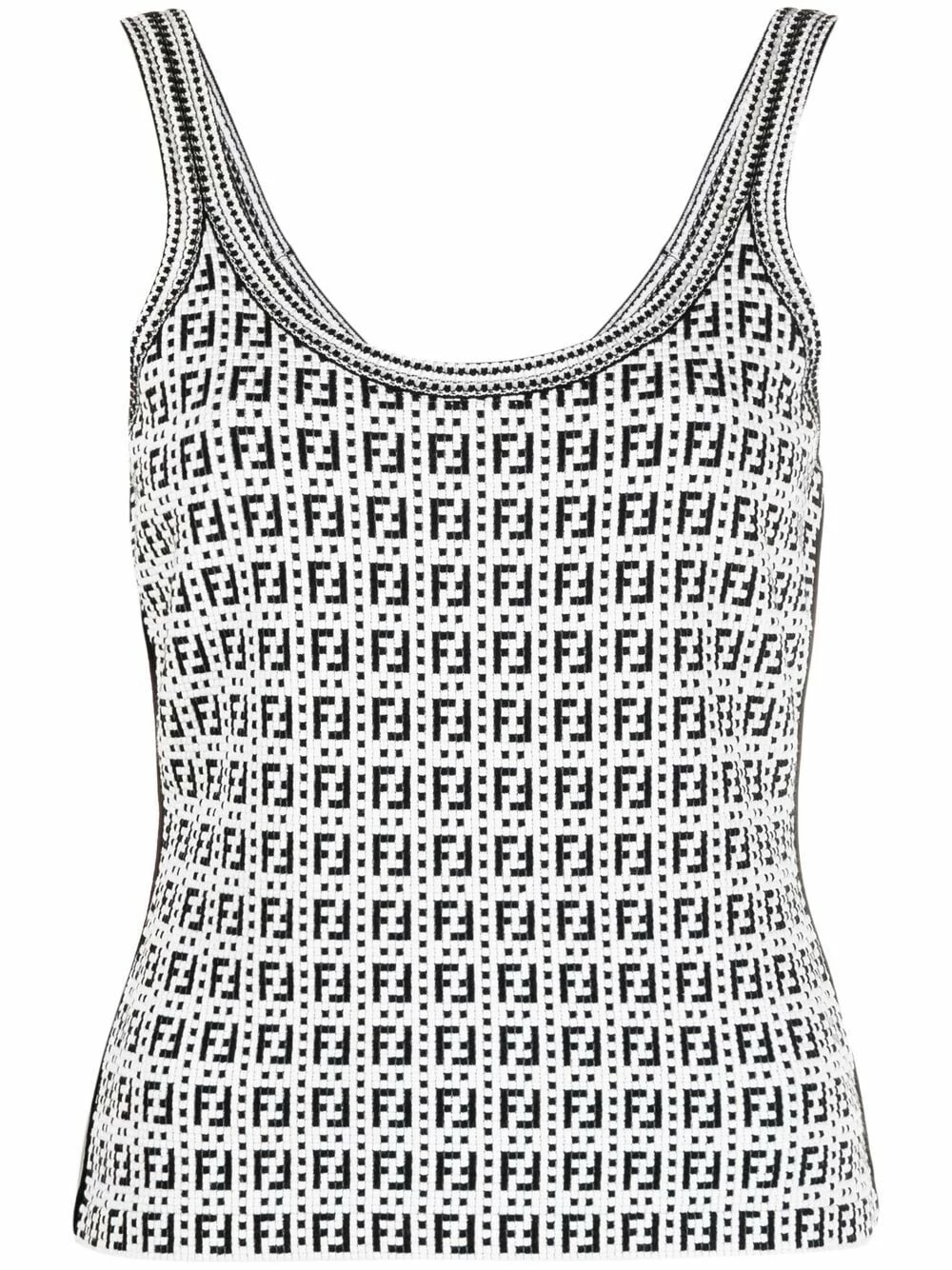Calling all logomania fans. Look closely and you’ll notice Fendi’s tank top woven with the label’s signature FF motif. Brand aficionados, pledge your allegiance.