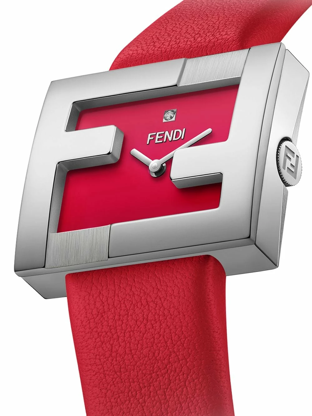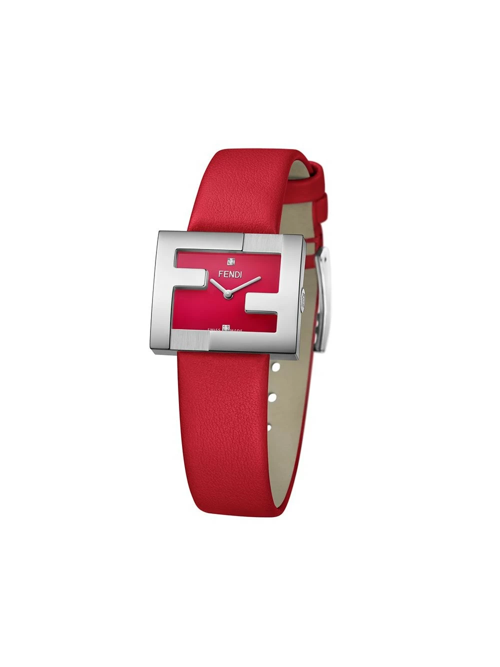 The best and boldest statement jewellery you can wear this season comes directly from Fendi. Expect to see opulent crystal and pearl accents and polished FF logos, as seen in this red stainless steel FF logo embellished watch. Featuring a stainless steel case, a leather strap, a silver-tone stainless steel FF logo bezel, a red lacquered dial set with two 0.01 carat diamonds, silver-tone hands and a pin buckle.