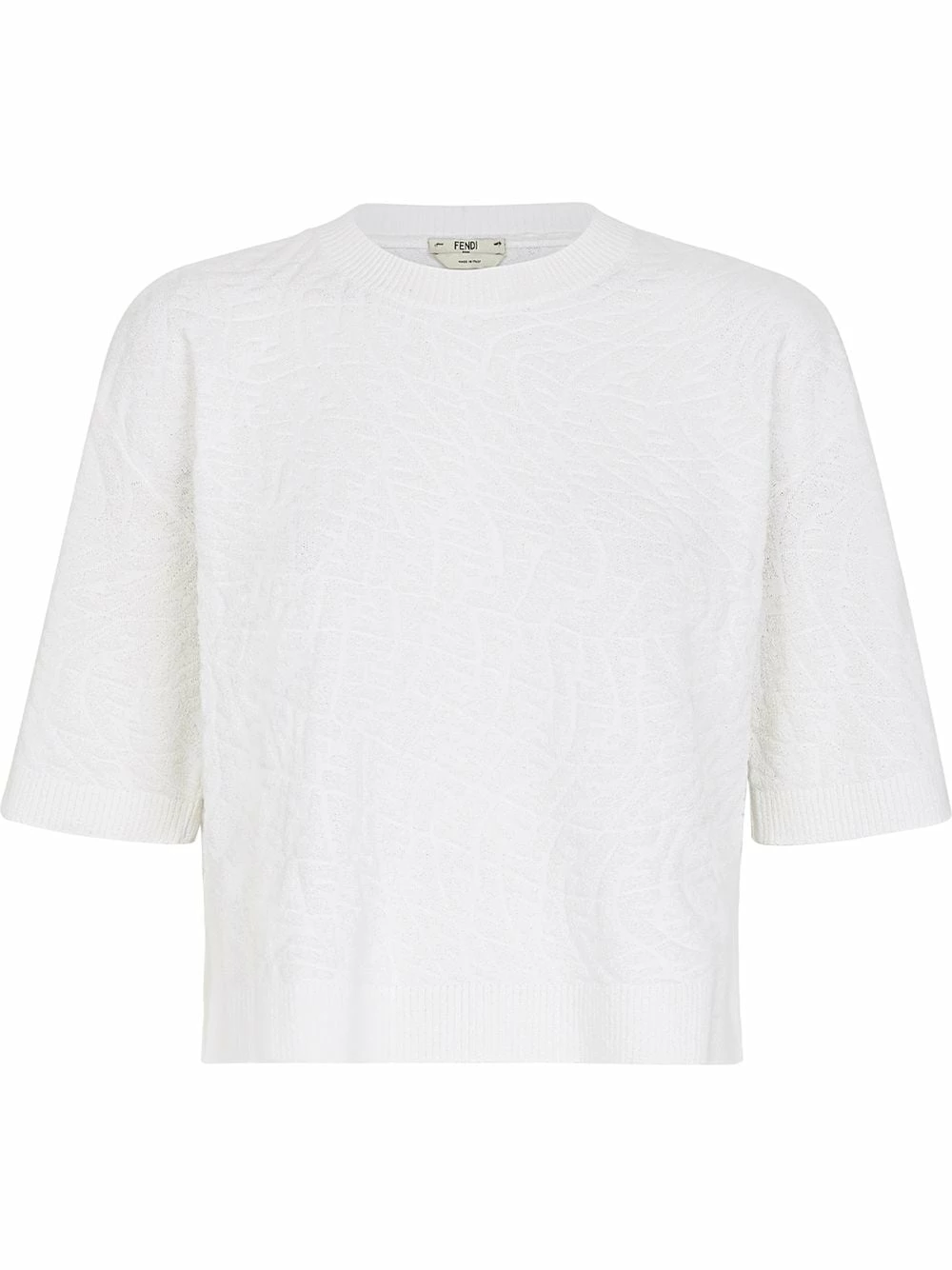For SS21, Fendi reworks their classic FF logo creating a ’70s inspired twisted and turned psychedelic iteration – the FF Vertigo. It’s seen faintly embossed all over this soft cotton-blend jumper marking a notably more subtle take on logomania for the Rome-based fashion house.