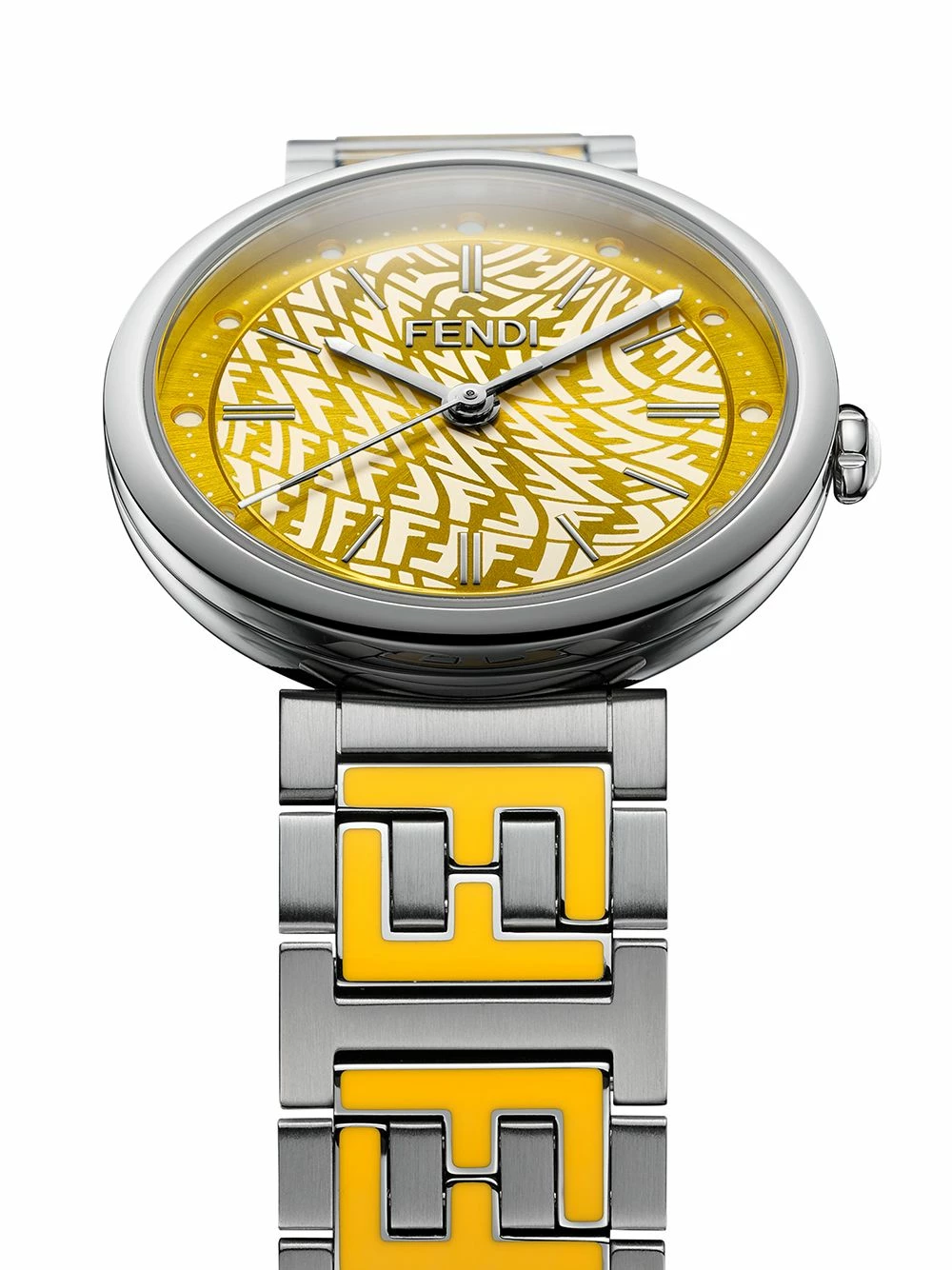 Fendi has taken a new approach to its instantly recognisable FF logo for SS21. Instead, the Italian house presents the motif in a swirling and distorted manner, called the FF Vertigo logo, that can be found across the dial of this Forever Vertigo 29mm.Β