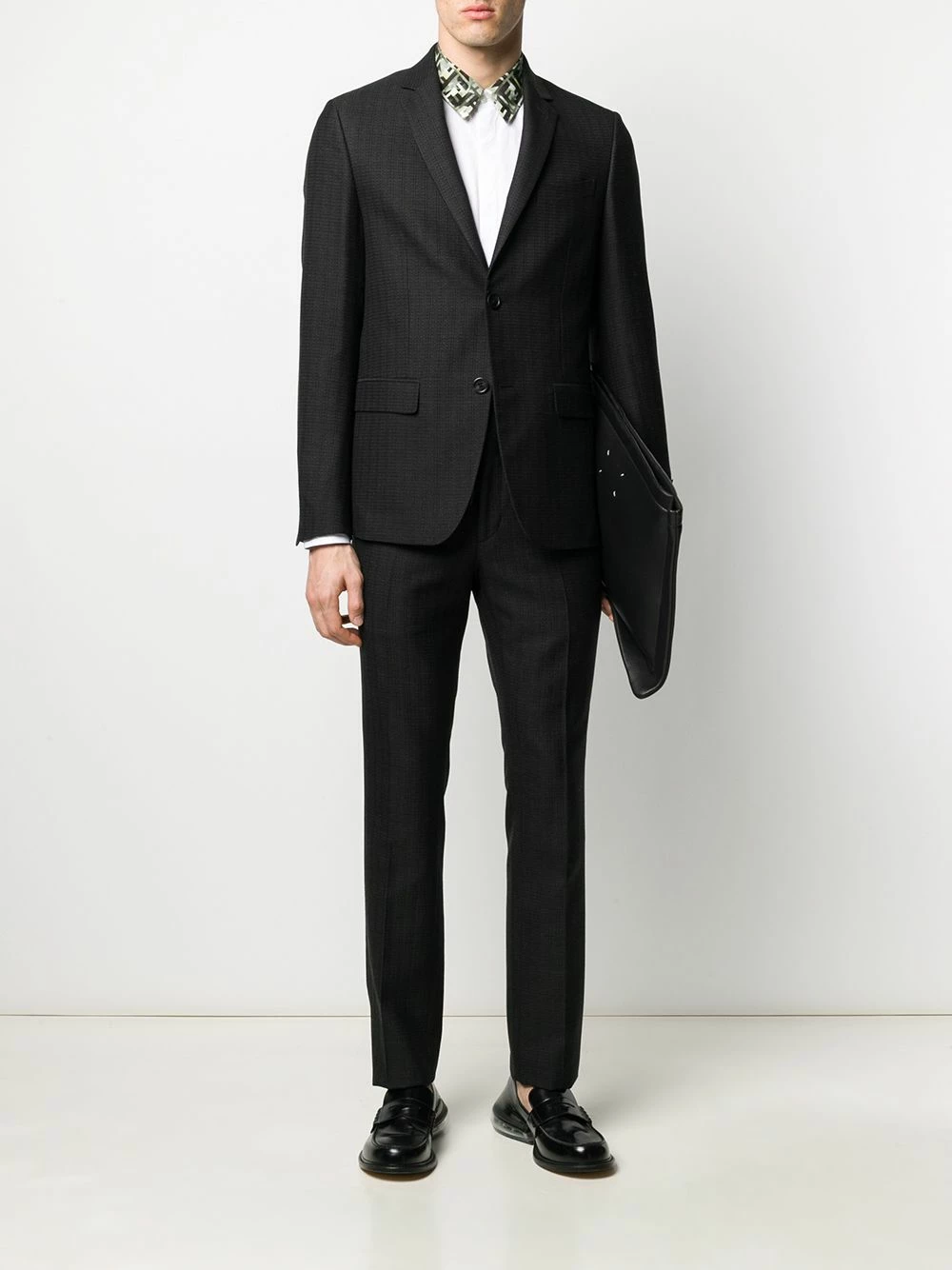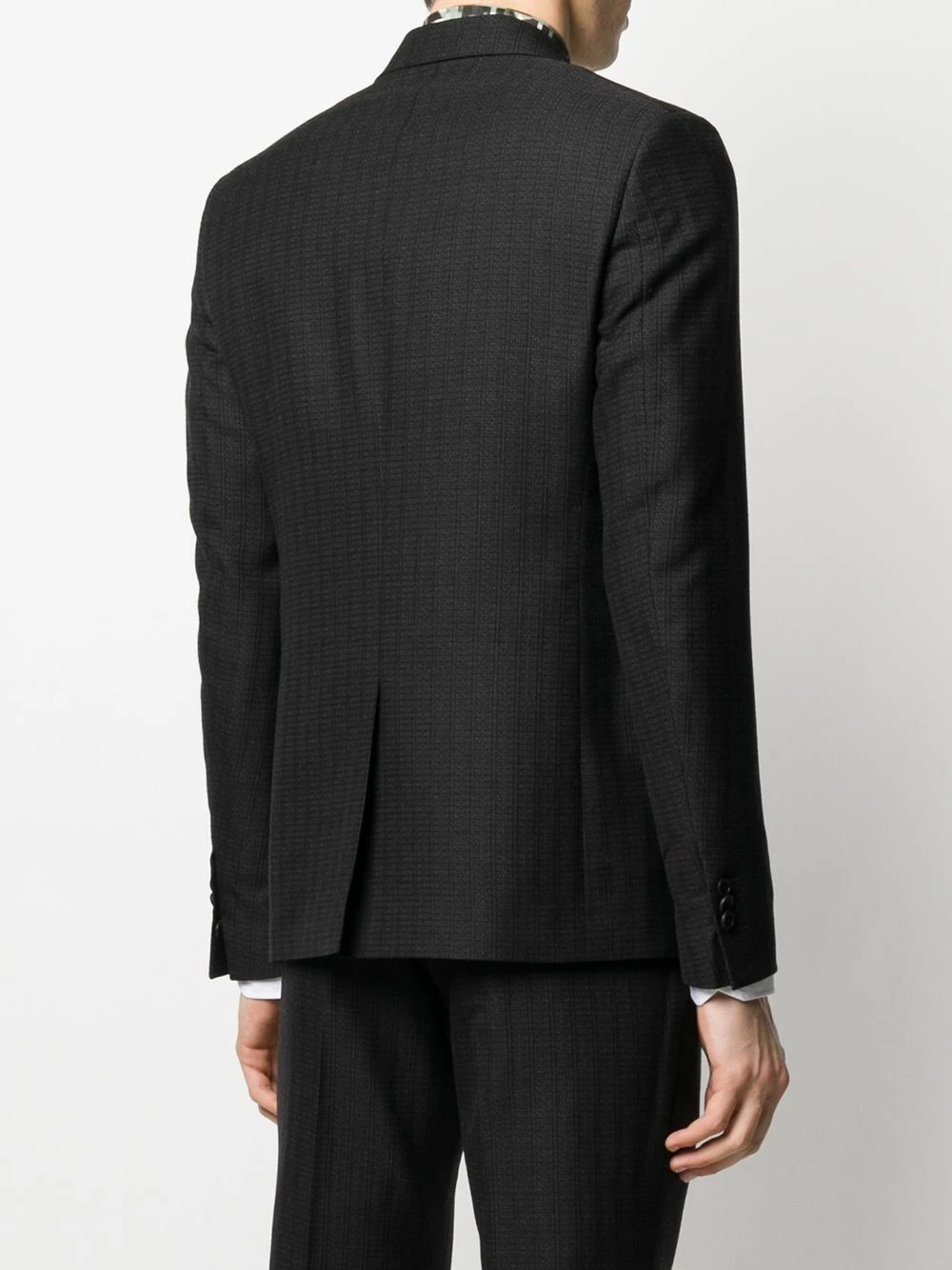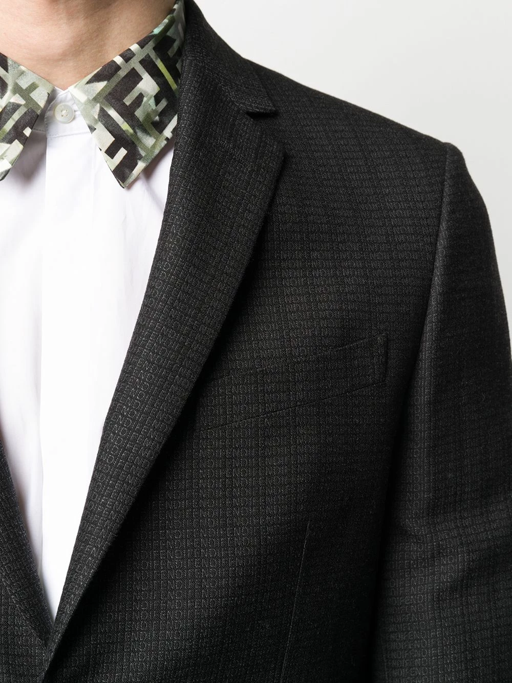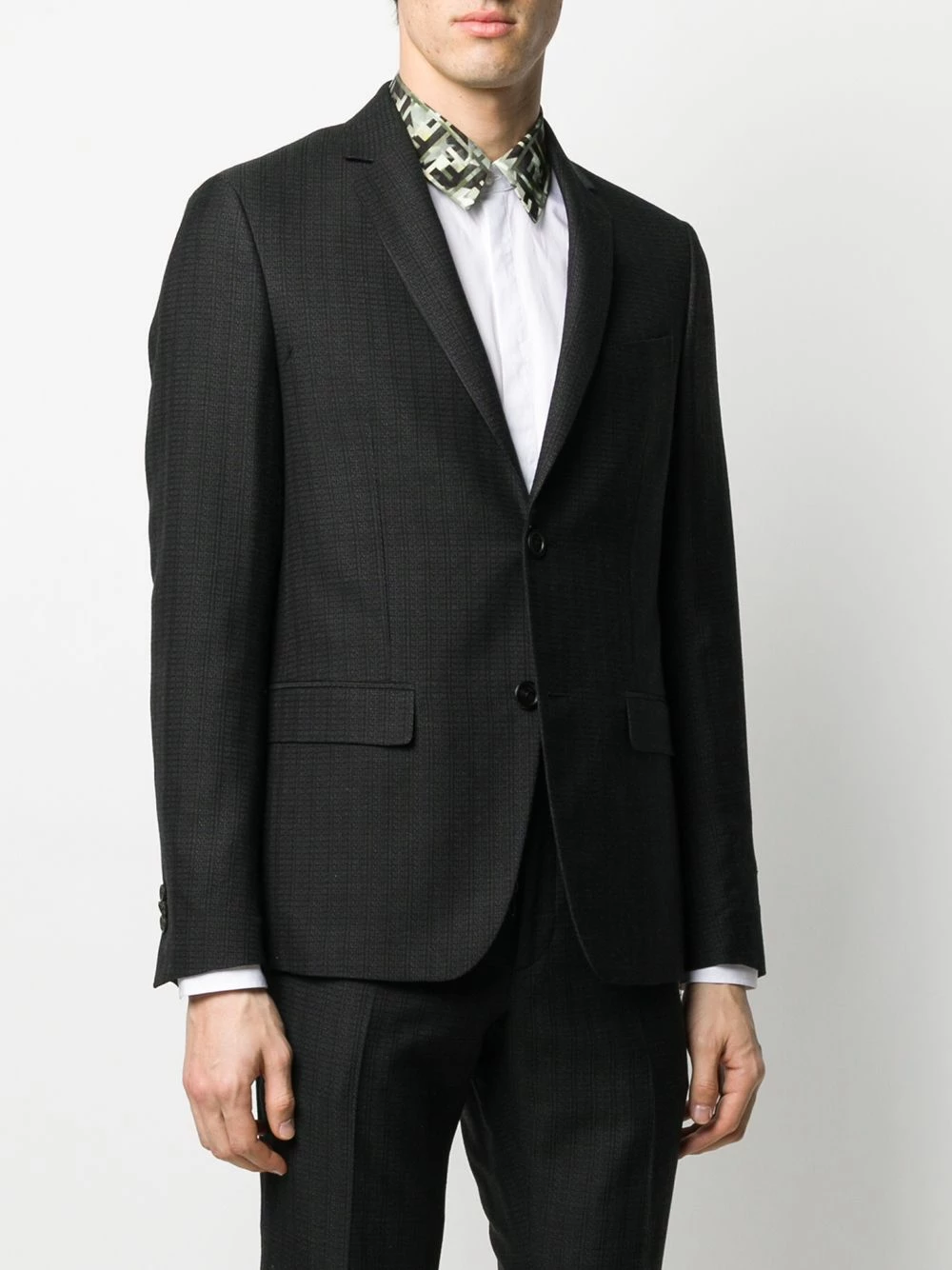 Don’t give up your love for logos just because you’re in an important meeting. This black wool-cotton single-breasted blazer from Fendi has jacquard-woven logo lettering in an all-over pattern. They’ll be none the wiser. Featuring notched lapels, a chest pocket, a front button fastening, long sleeves, front flap pockets, a rear central vent and an all-over logo lettering pattern.