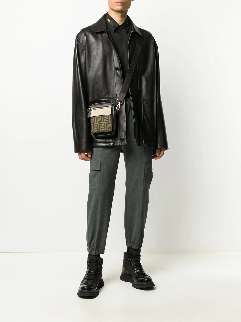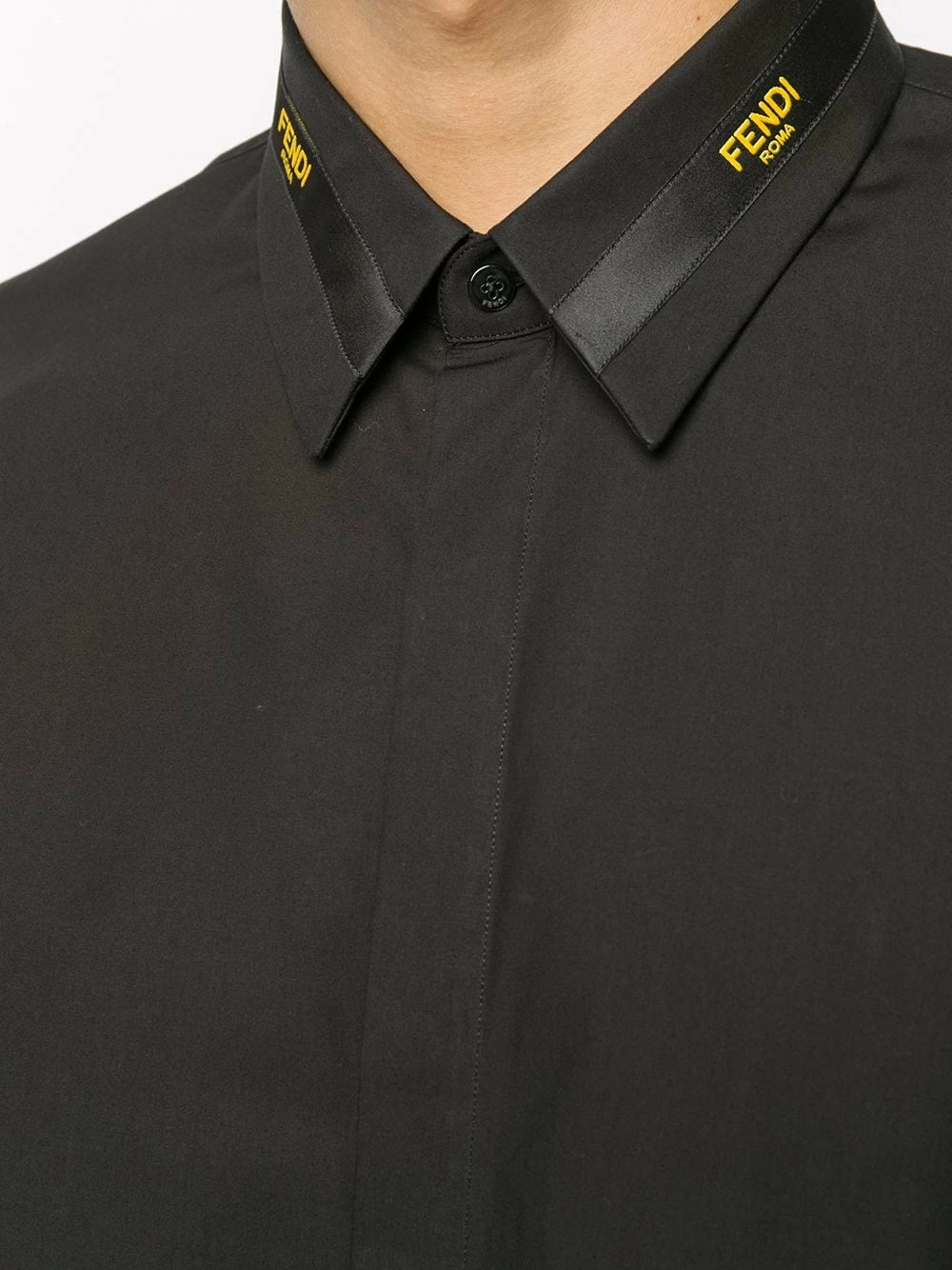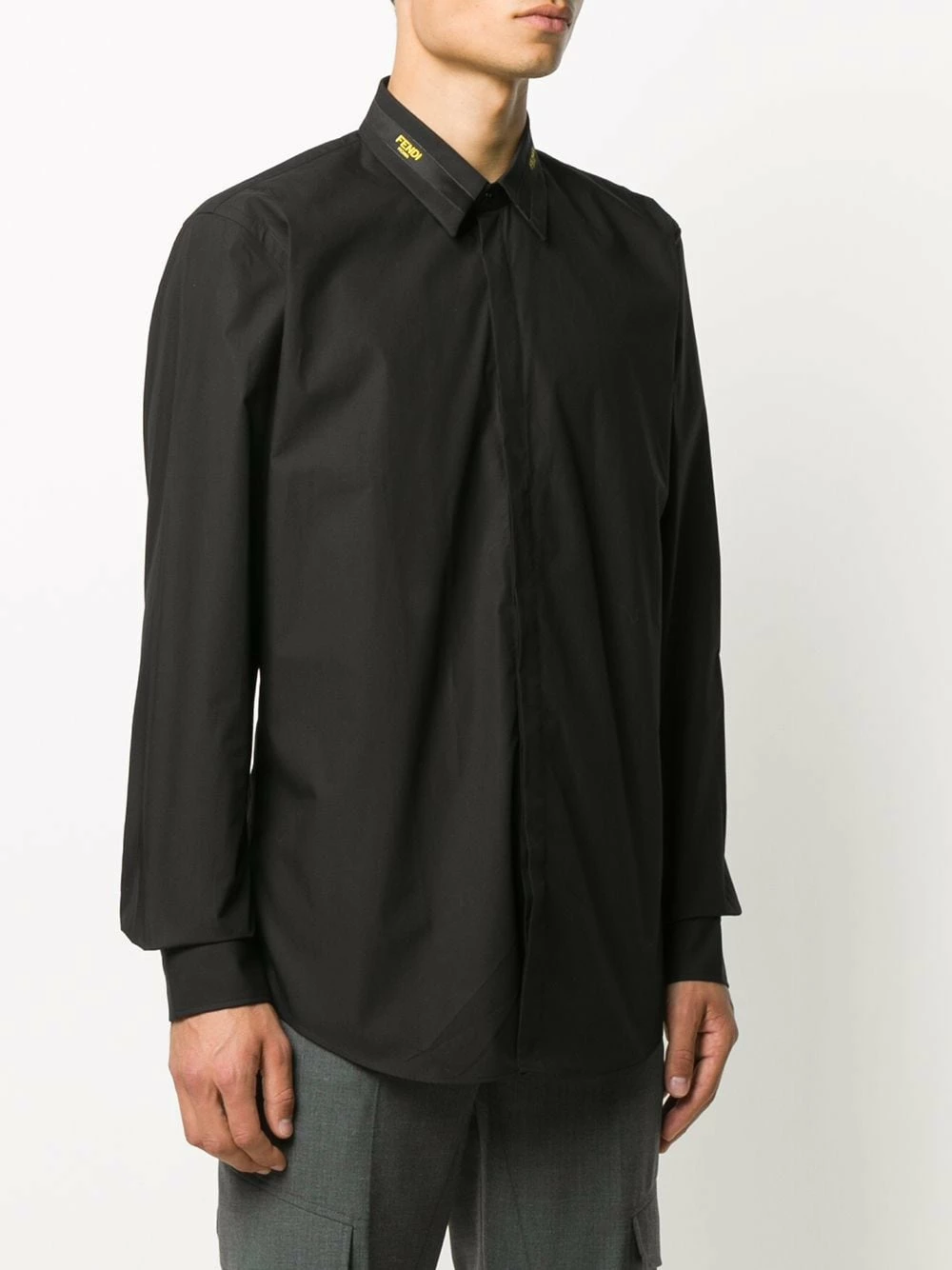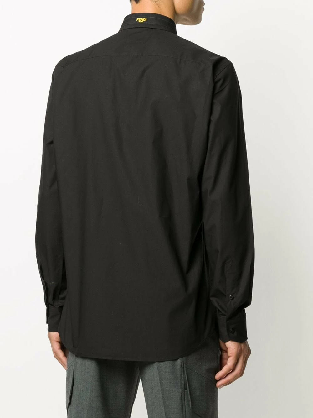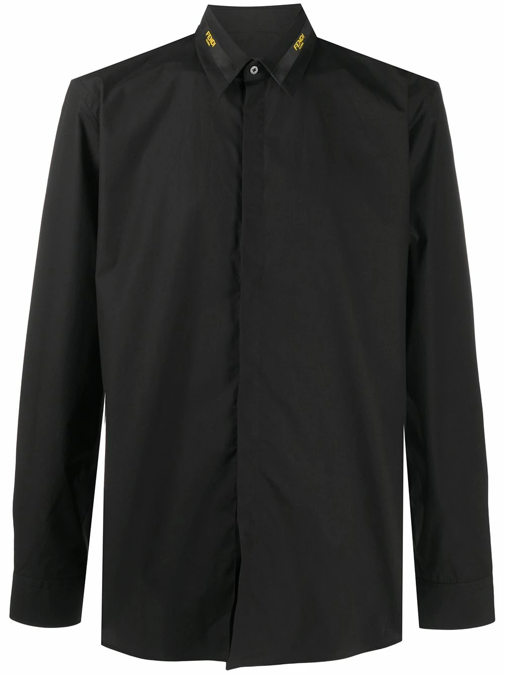 A classic with a twist. Made from cotton, this long-sleeve black shirt from Fendi is elevated with its contrasting yellow logo-stripe at the collar. It’s all in the detail.