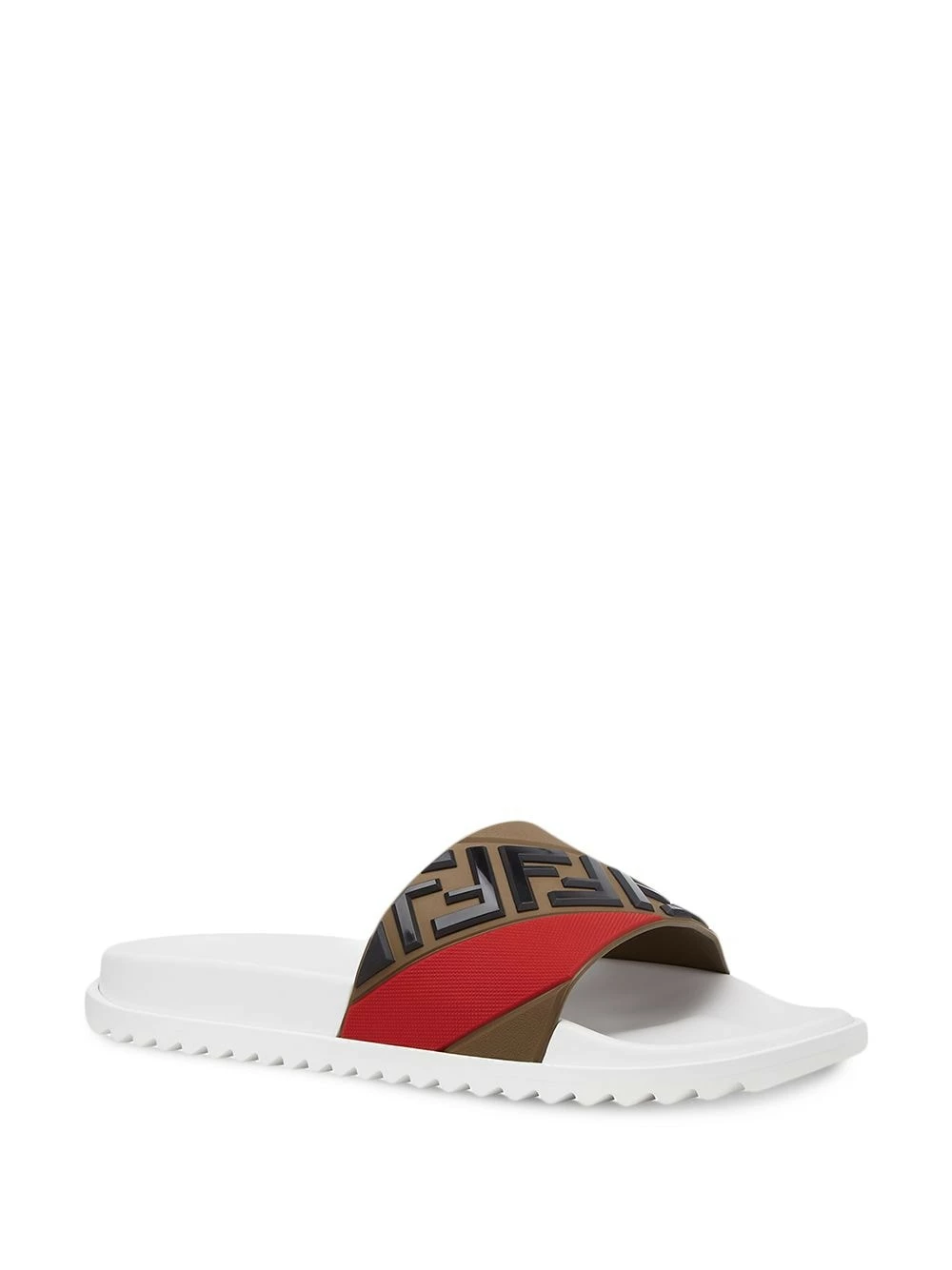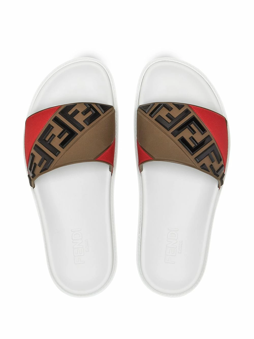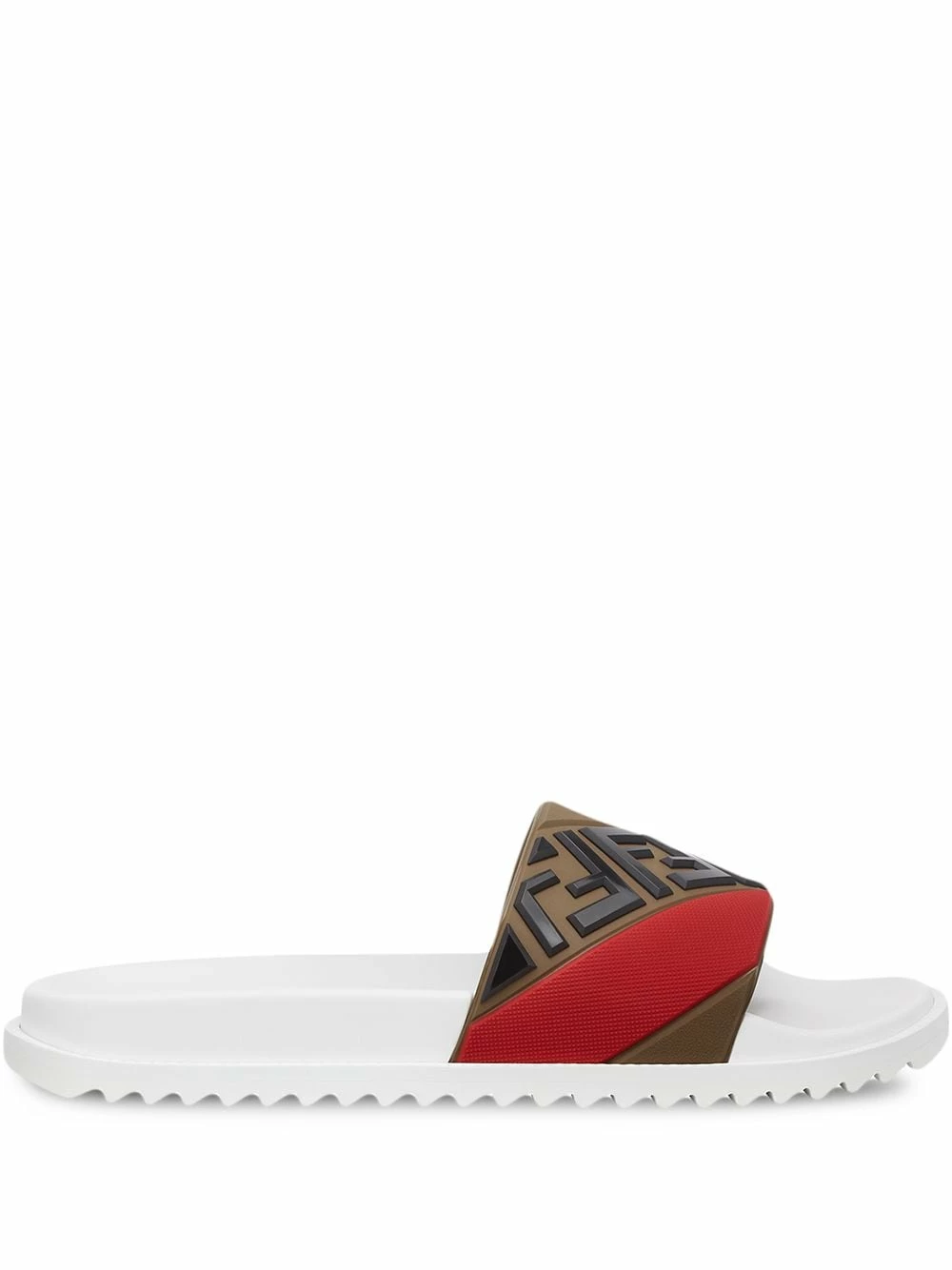 Fendi’s FF logo is intricately woven into the strap of these rubber slides. They’re made in Italy with a cushioned footbed and rubber sole, to ensure a comfortable wear.