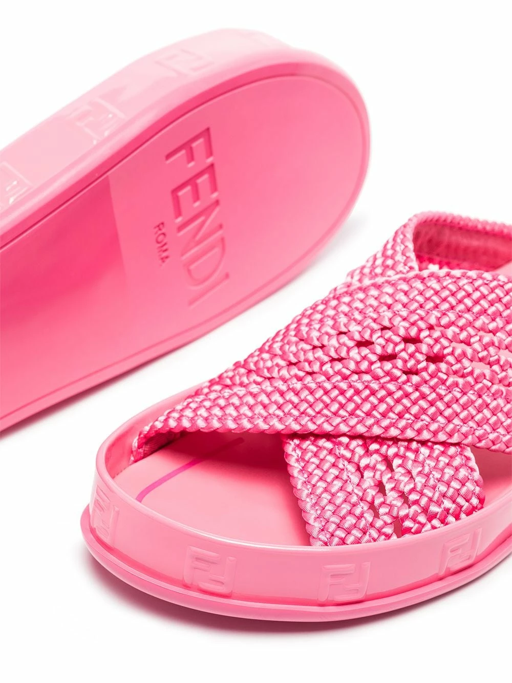 The delicate woven detail on these Fendi Reflections slides balances out their flat rubber sole, embellished with the house’s monogram all over. Their bright pink tone serves as an ode to spring and summer, making them the perfect footwear pick for warmer days.