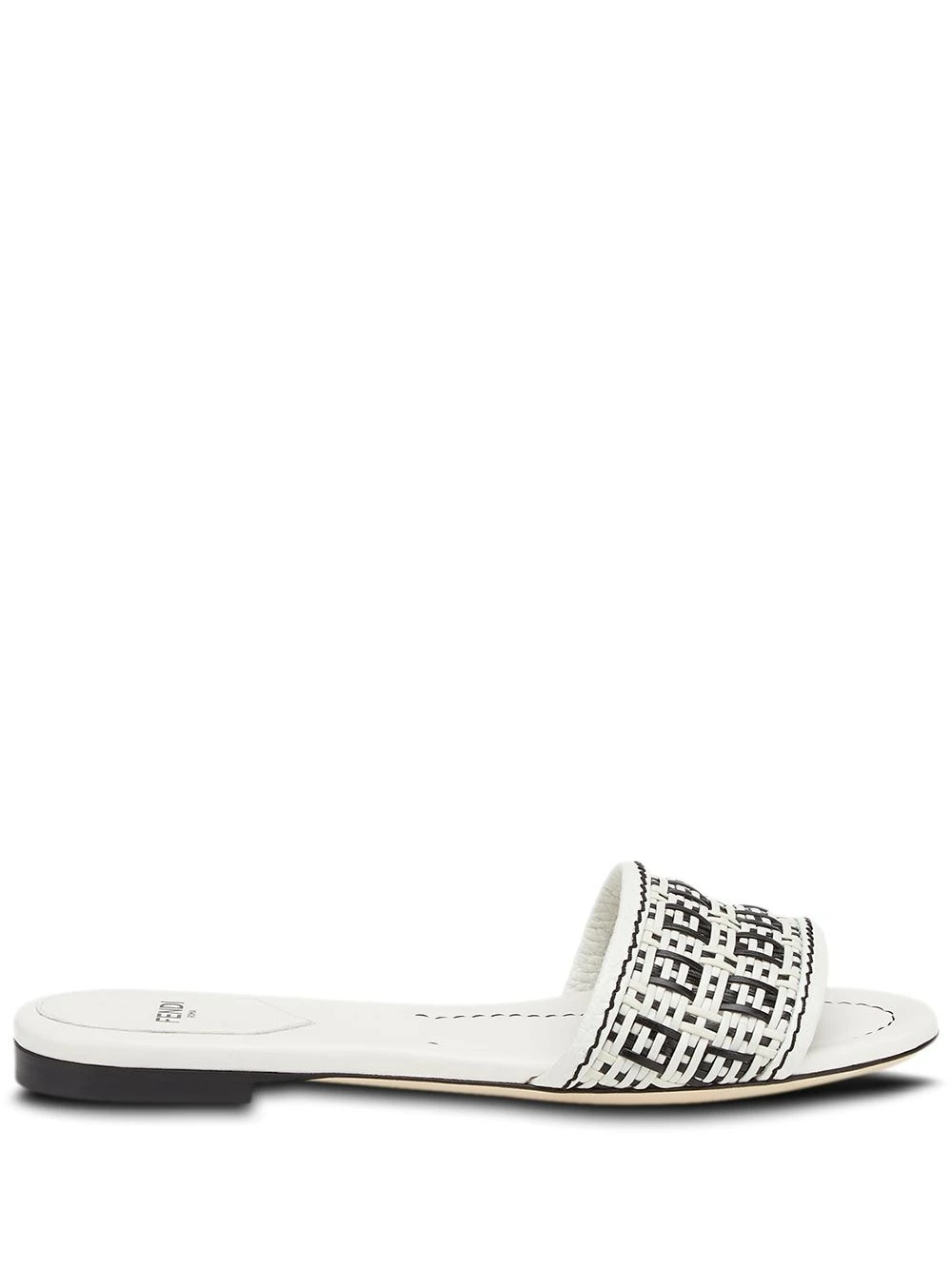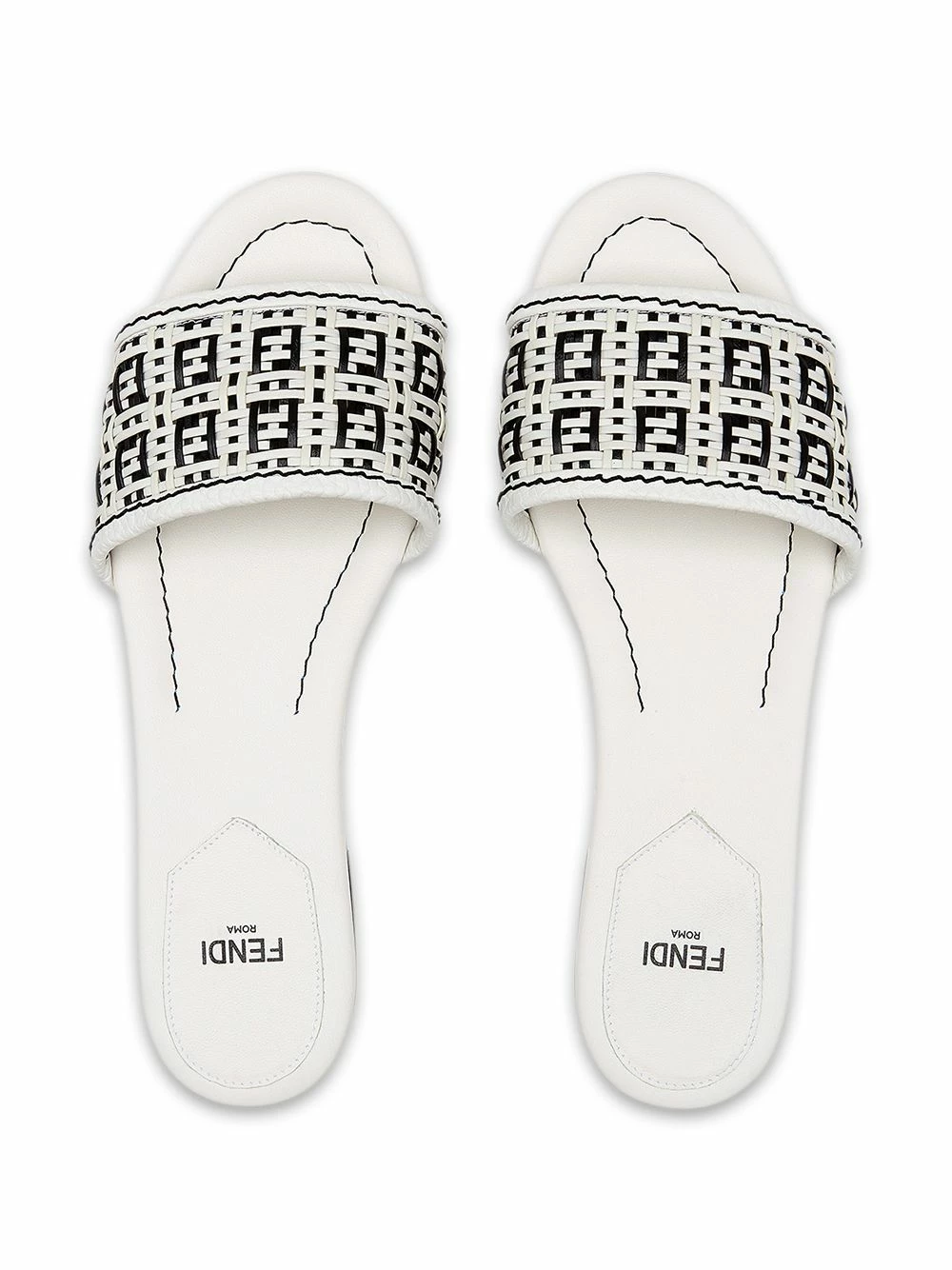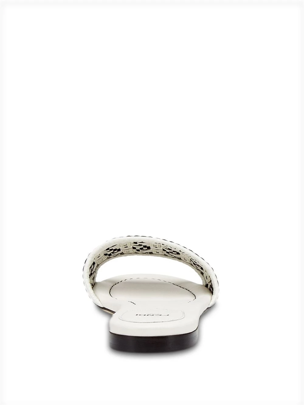 Missing your last summer holiday? Sadly you’re stuck at the office and it’s pouring outside but you can still picture yourself poolside, with a drink in your hand and your feet in these two-tone interwoven flat sandals from Fendi. Daydream away.