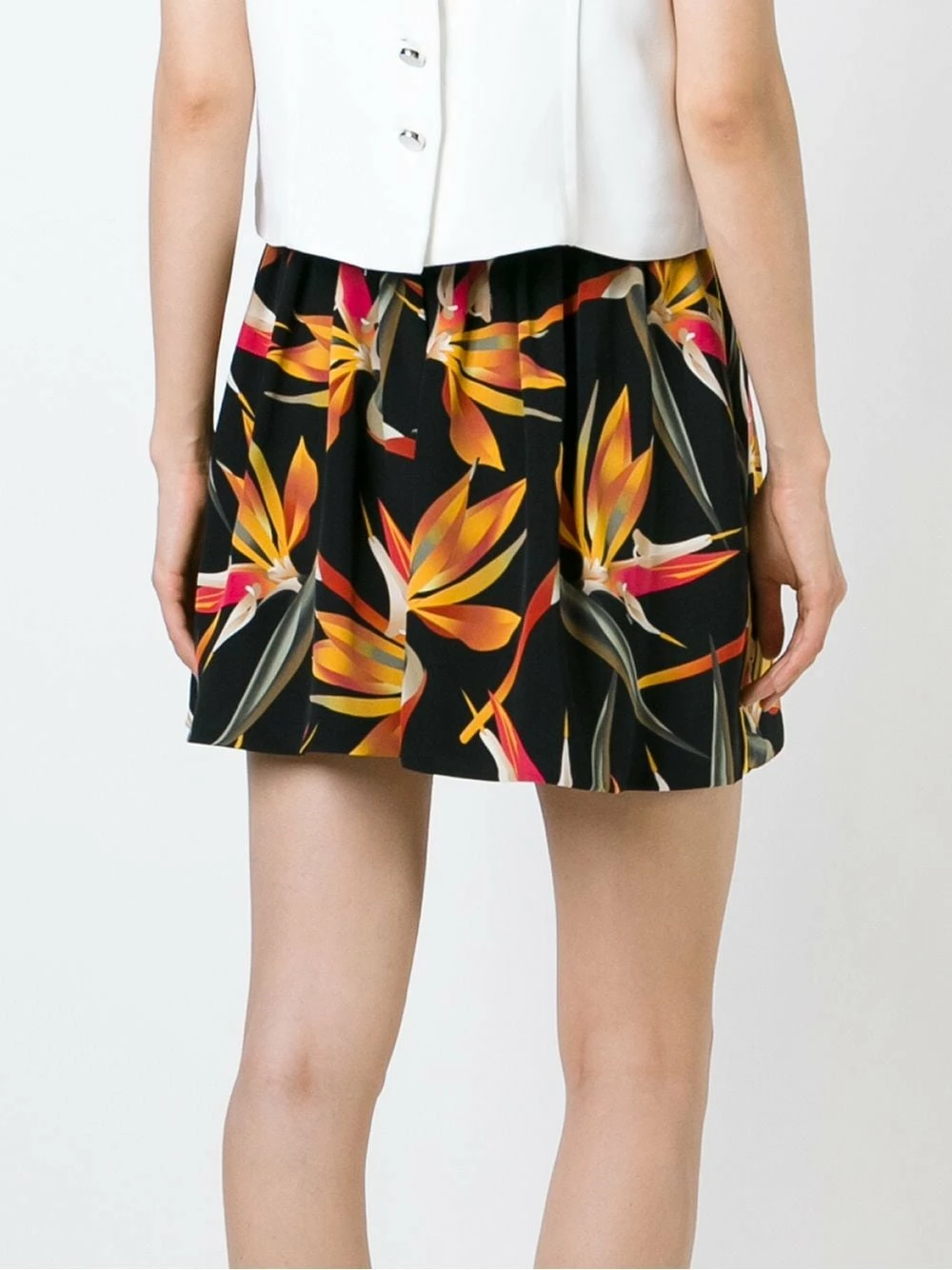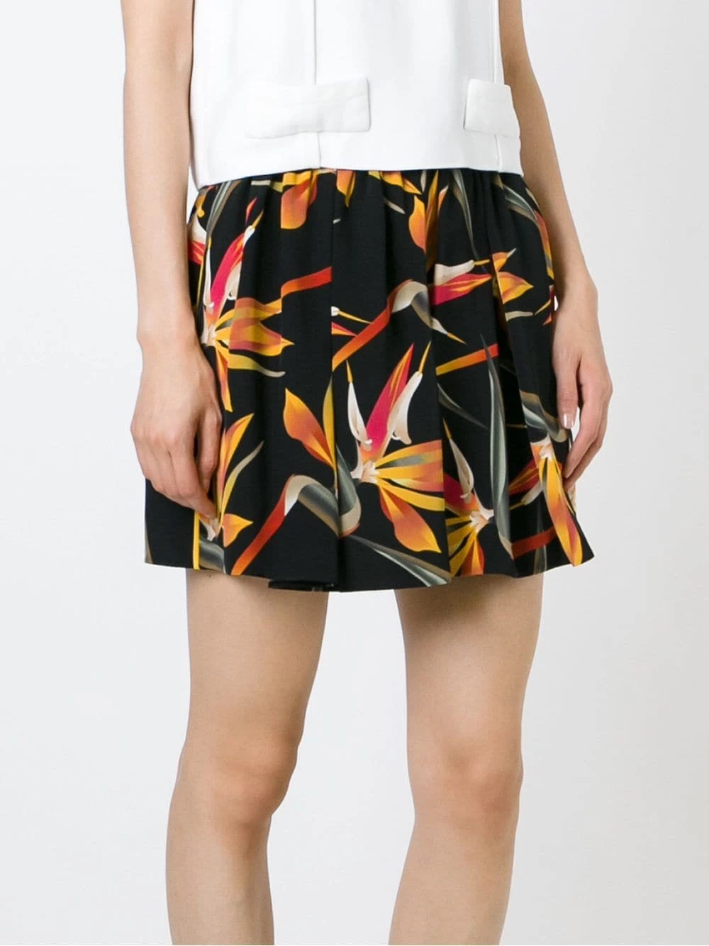 Multicoloured silk Bird of Paradise print shorts from Fendi featuring a short length, a concealed fastening and pleated details.