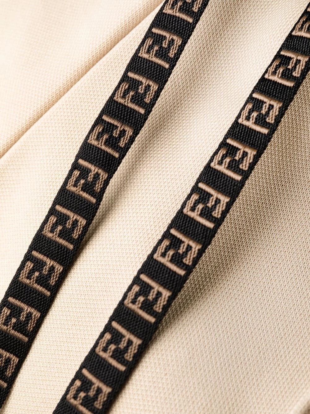Fendi’s innovative use of the brand’s monogram is showcased on this pair of trousers as a logo-tape detail on the drawstring waist and side of the leg. Making the garment instantly recognisable, it also references a longstanding feature of the brand, which was created in 1965, in a modern way.