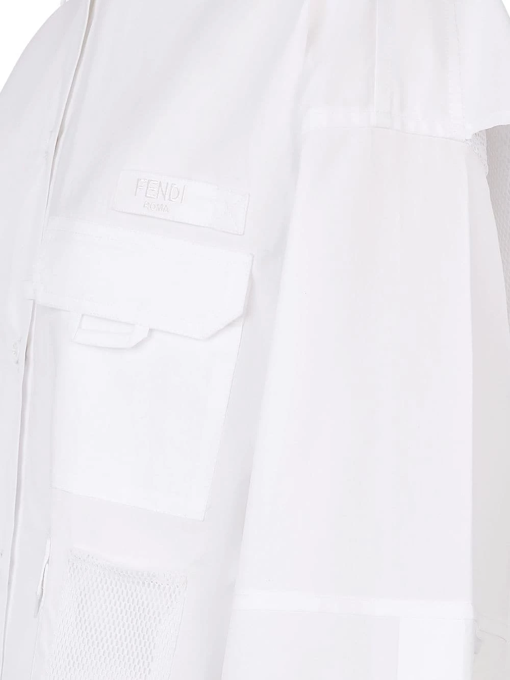 Youβre all about the classics – but a sprinkle of Fendi appeal is always welcome. The timeless white shirt silhouette has been given an update in this shirtdress, boasting a logo patch and multiple flap pockets. A modern staple.