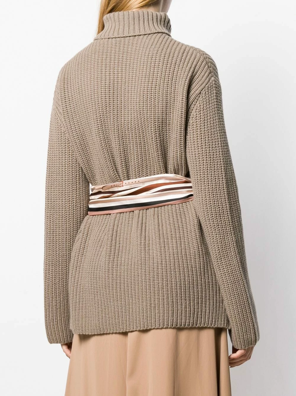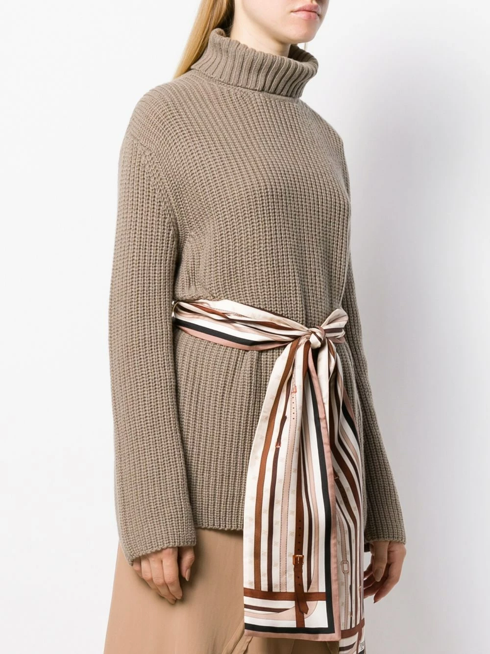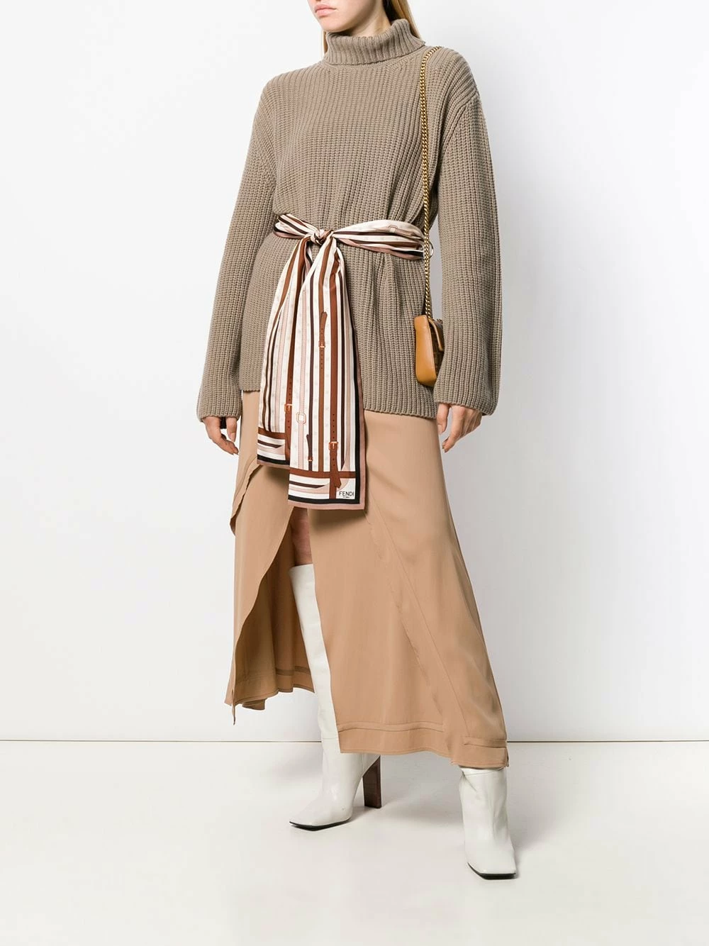 Classics with a twist, we all love them. This belted roll-neck cashmere jumper from Fendi combines a timeless design with a silk belt detail that keeps it cool and elegant. Cosy up.