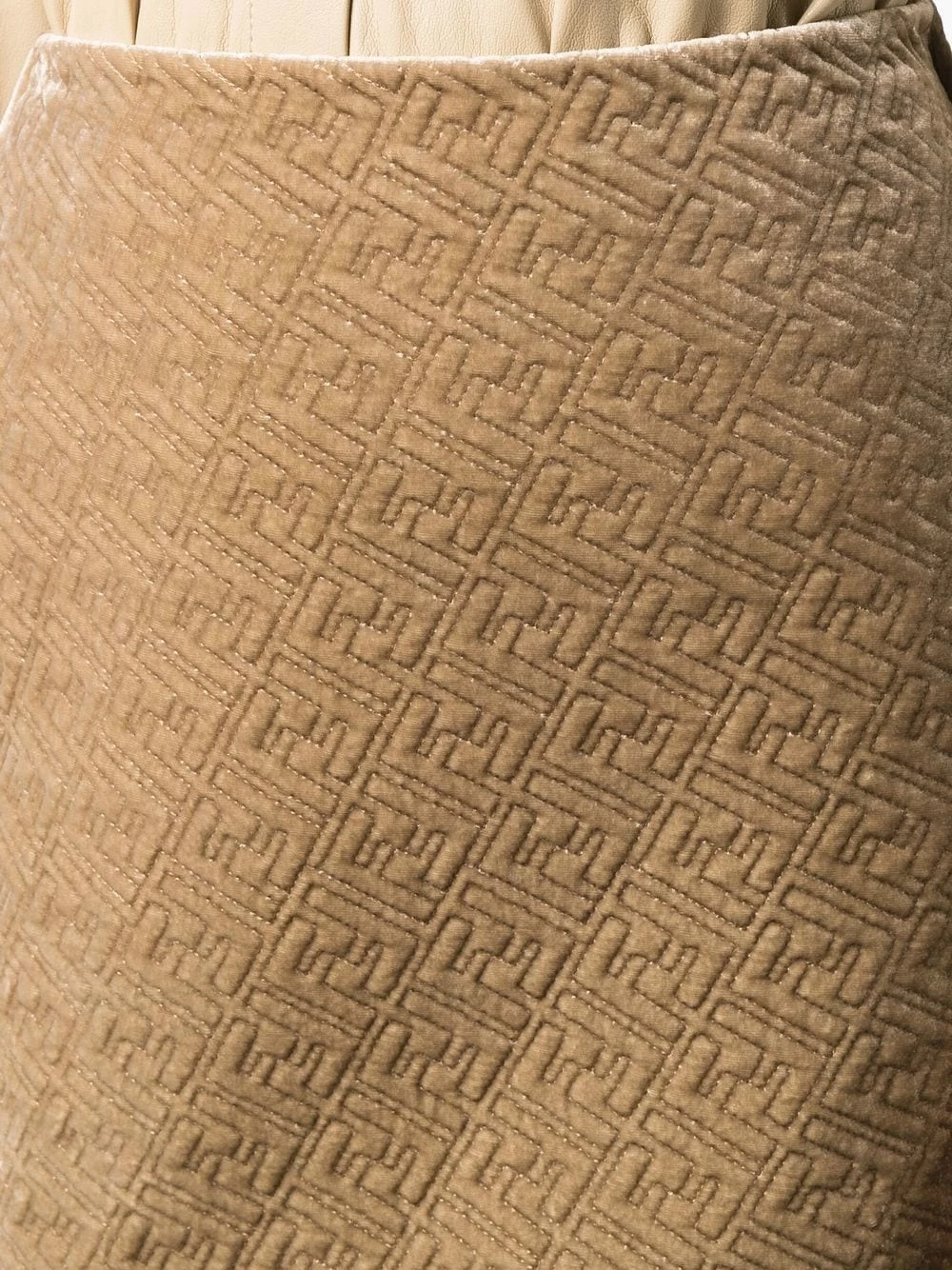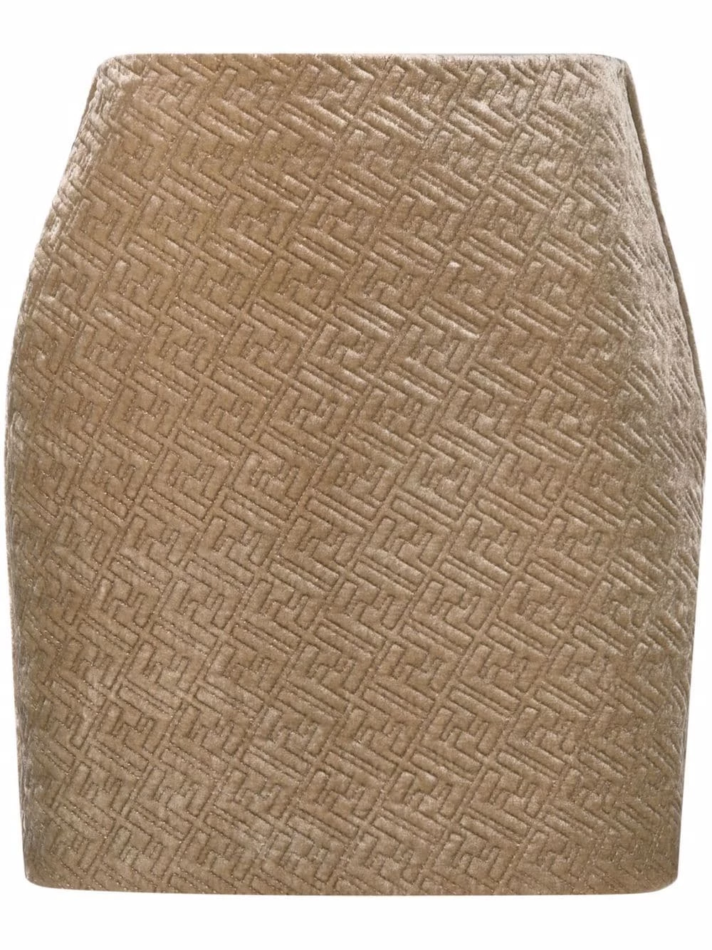Fendi embraces logos and monogram motifs, such as the classic FF pattern which is embossed on this brown skirt. The high-waisted style has an A-line silhouette and a velvet feel.
