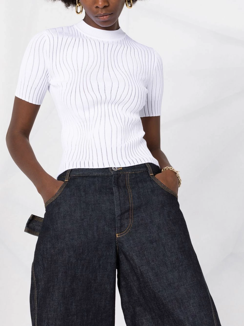 Designed with a curved rib-knit throughout the silhouette, this fitted knitted top showcases Fendi’s mastery in adding unexpected twists to wardrobe staples.Β