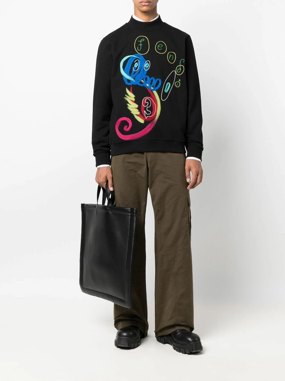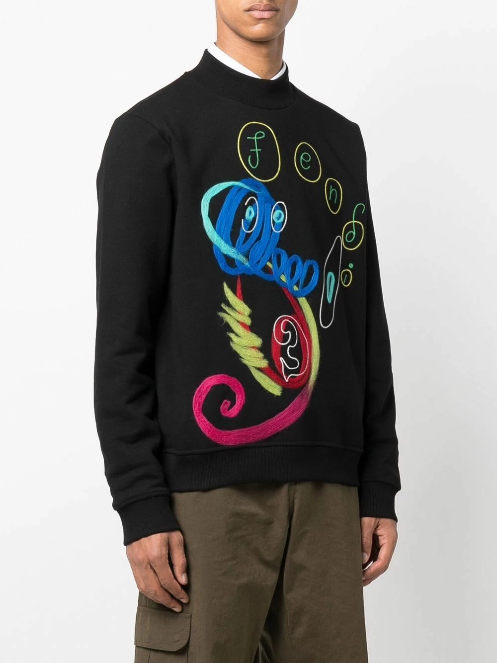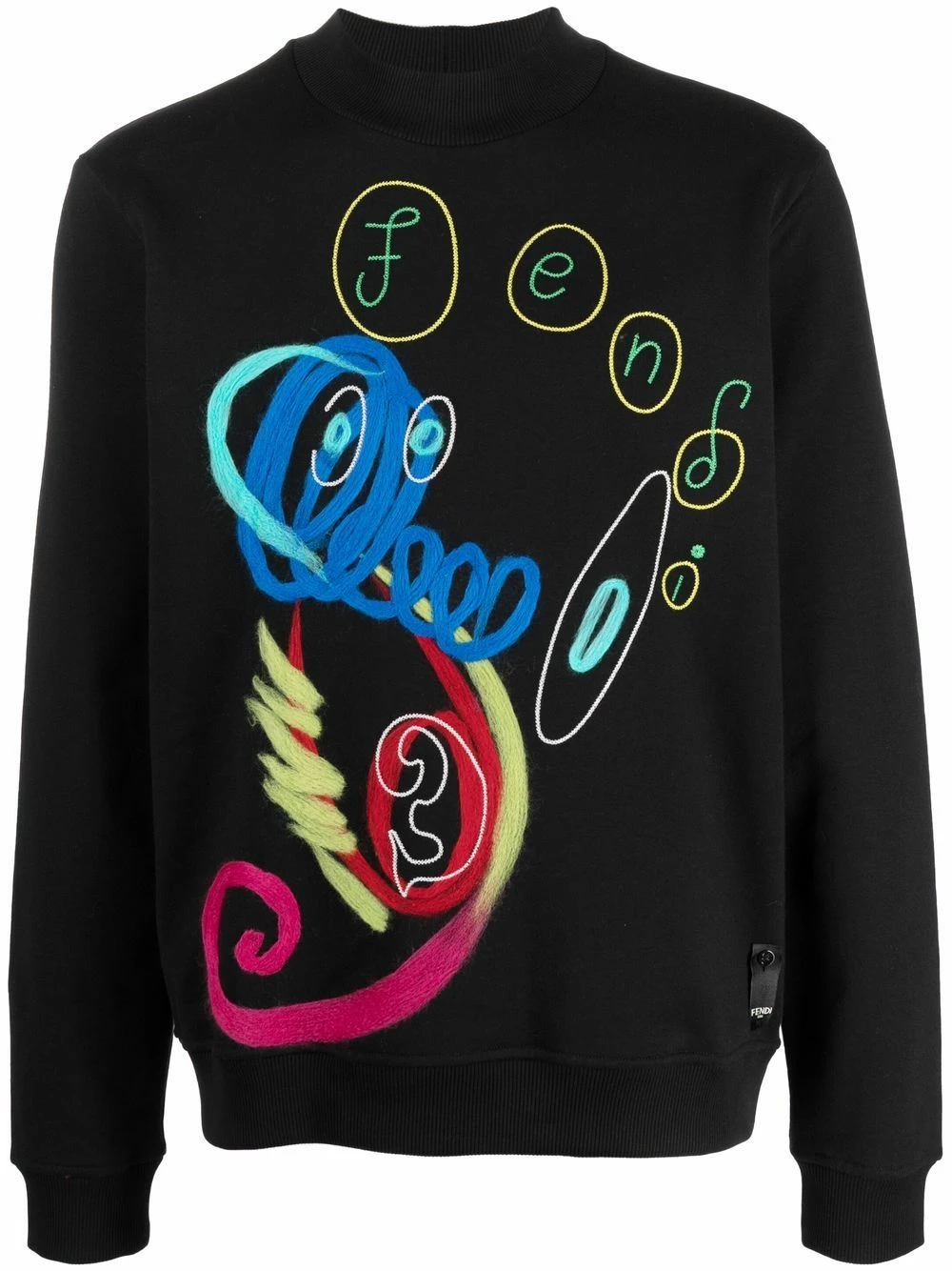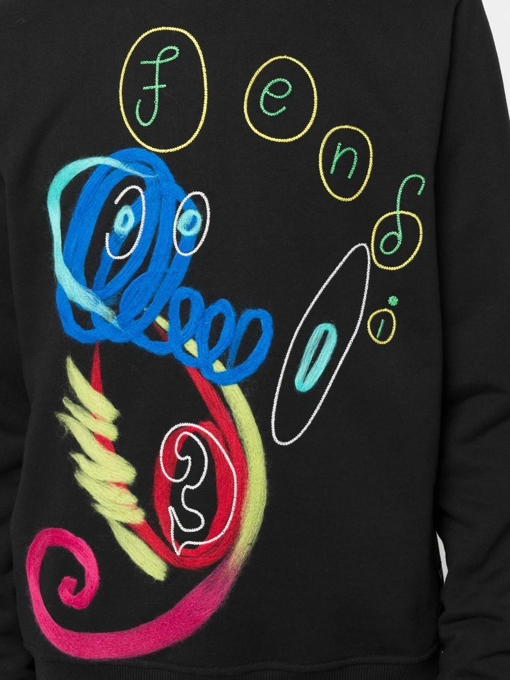 This season, Fendi paired up with Noel Fielding, celebrating the British artistβs designs in their knitwear collection. A part of the line, this jumper boasts a multicoloured embroidered motif to the front.