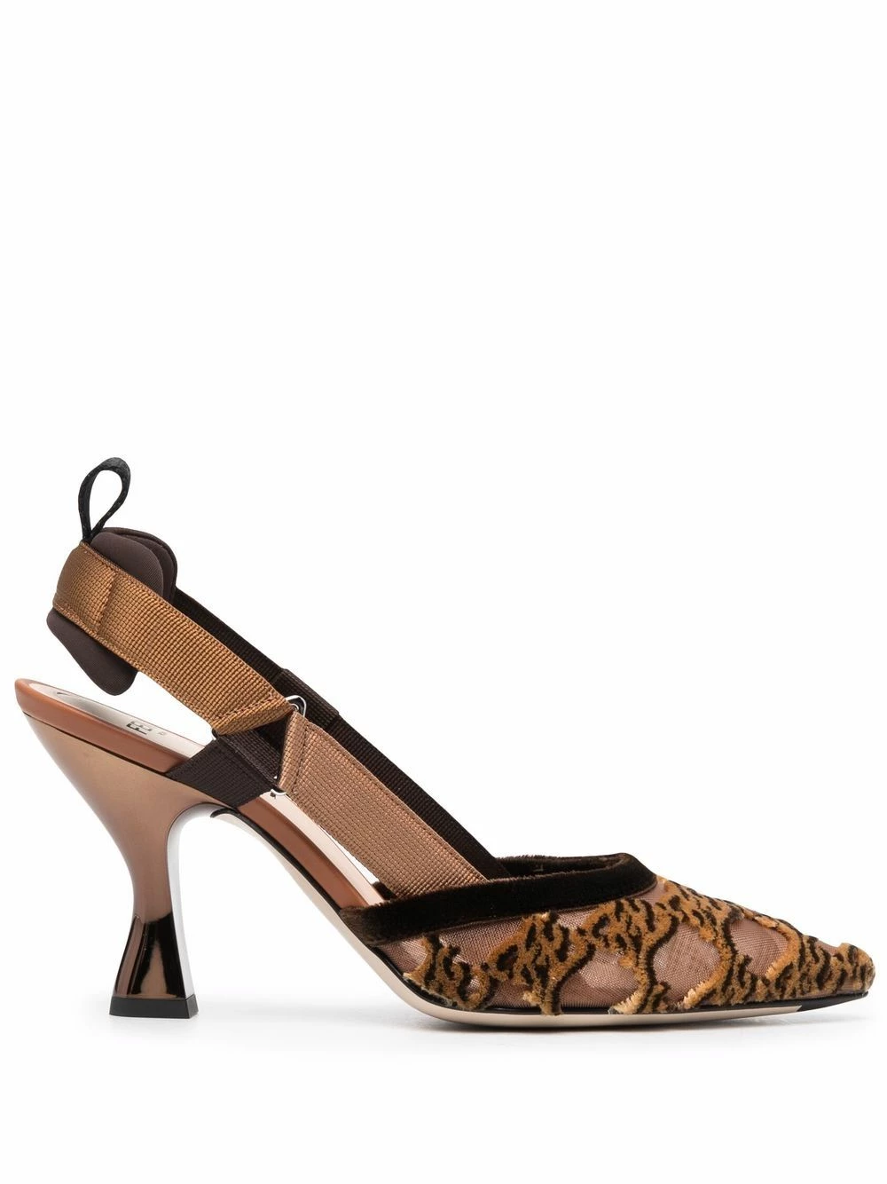 Drawing upon the fashion house’s extensive footwear knowledge, Fendi adds a sporty feel to these classic slingback pumps, detailing them with a comfortable elasticated strap and a sneaker-like pull-tab at the heel.