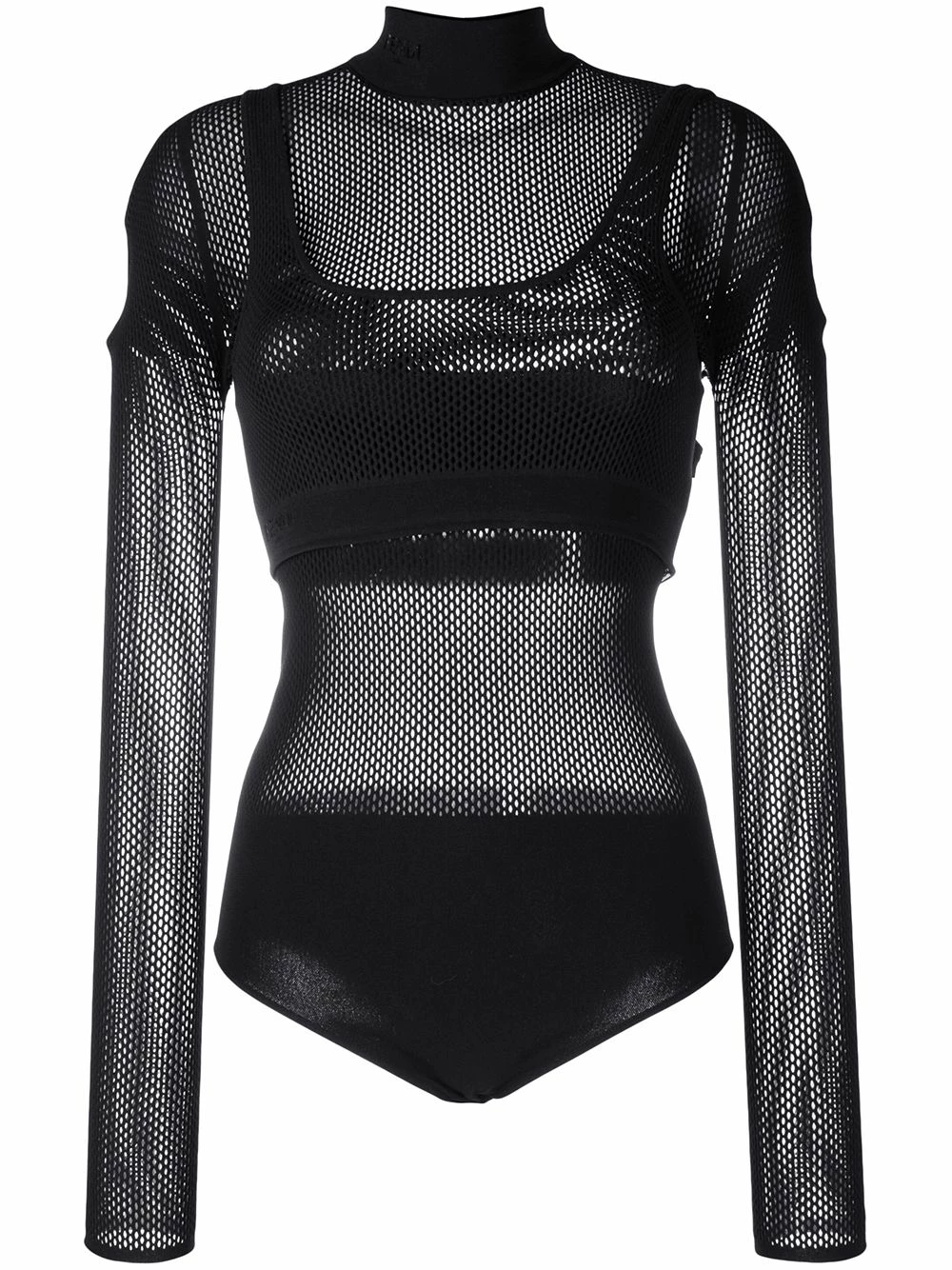 Mesh with fashion’s finest thanks to Fendi. Featuring a layered design and mesh construction, this bodysuit can be used for layering or as stand out piece. Your call.