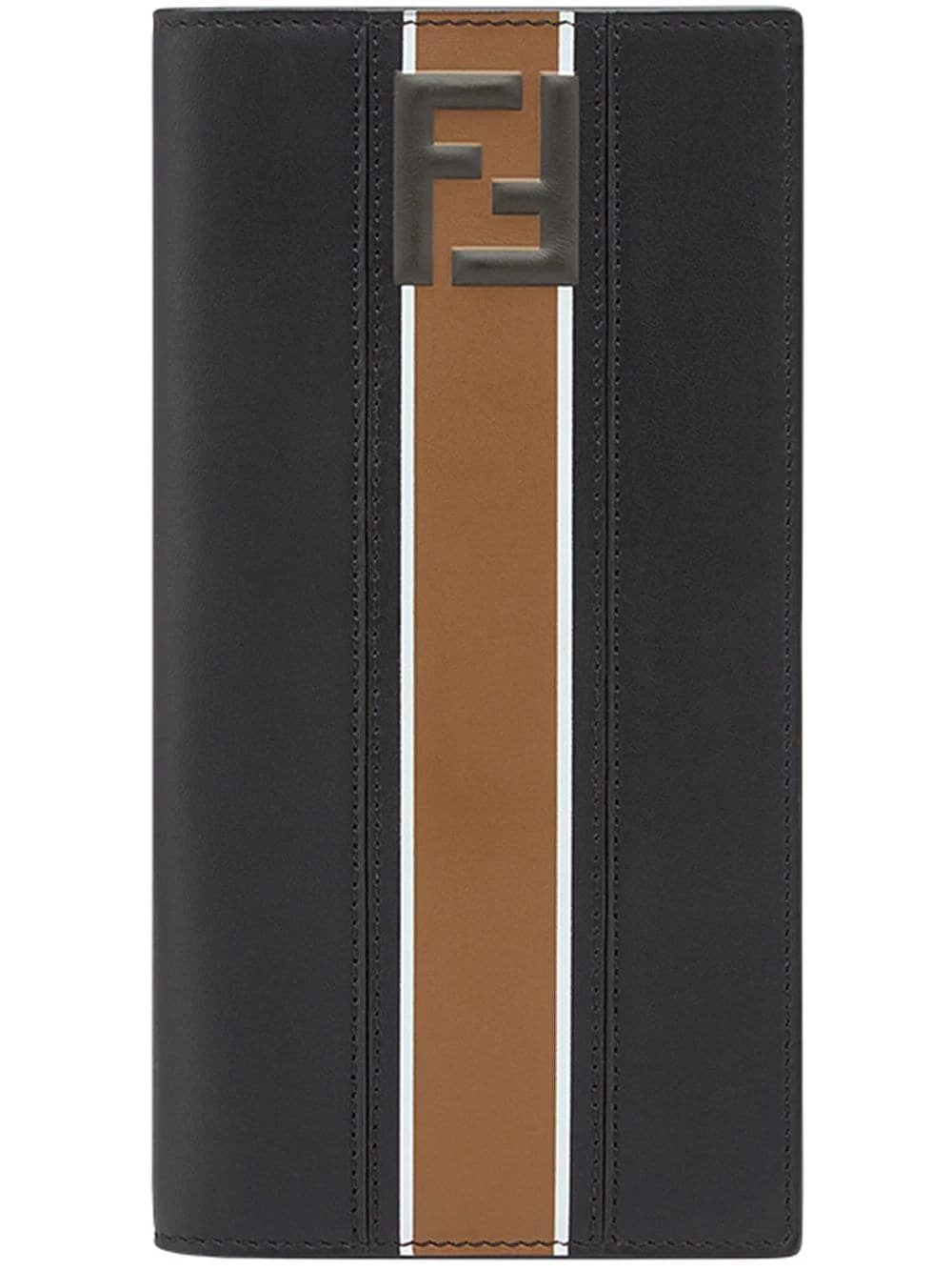 This logo continental wallet from Fendi is perfect for carrying all your essentials cards and notes. Crafted in Italy from a luxury black cotton blend and calf leather, this wallet showcases a folded construction with multiple card slots and note compartments. The design is finished with vertical stripes and a front logo plaque.