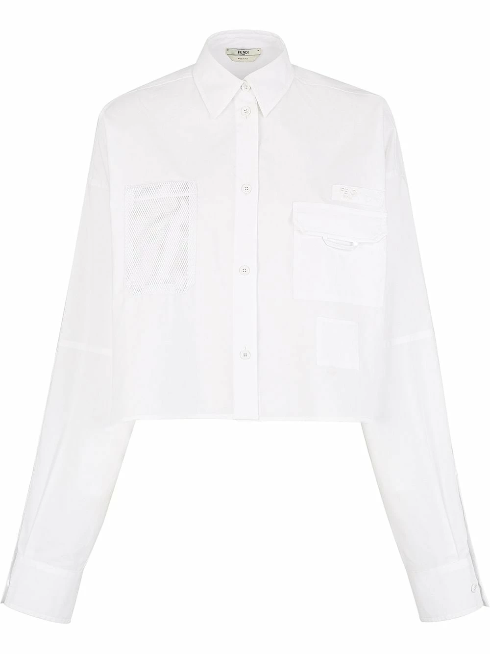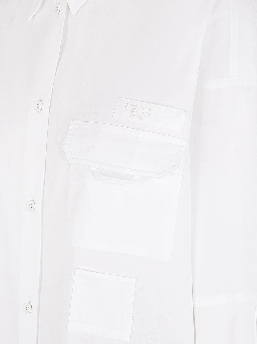 Thereβs no saying no to a classic white shirt. Updating your traditional shirt silhouette with a front logo patch and multiple front pockets, this one from Fendi makes a mandatory addition to any collection. A modern classic.