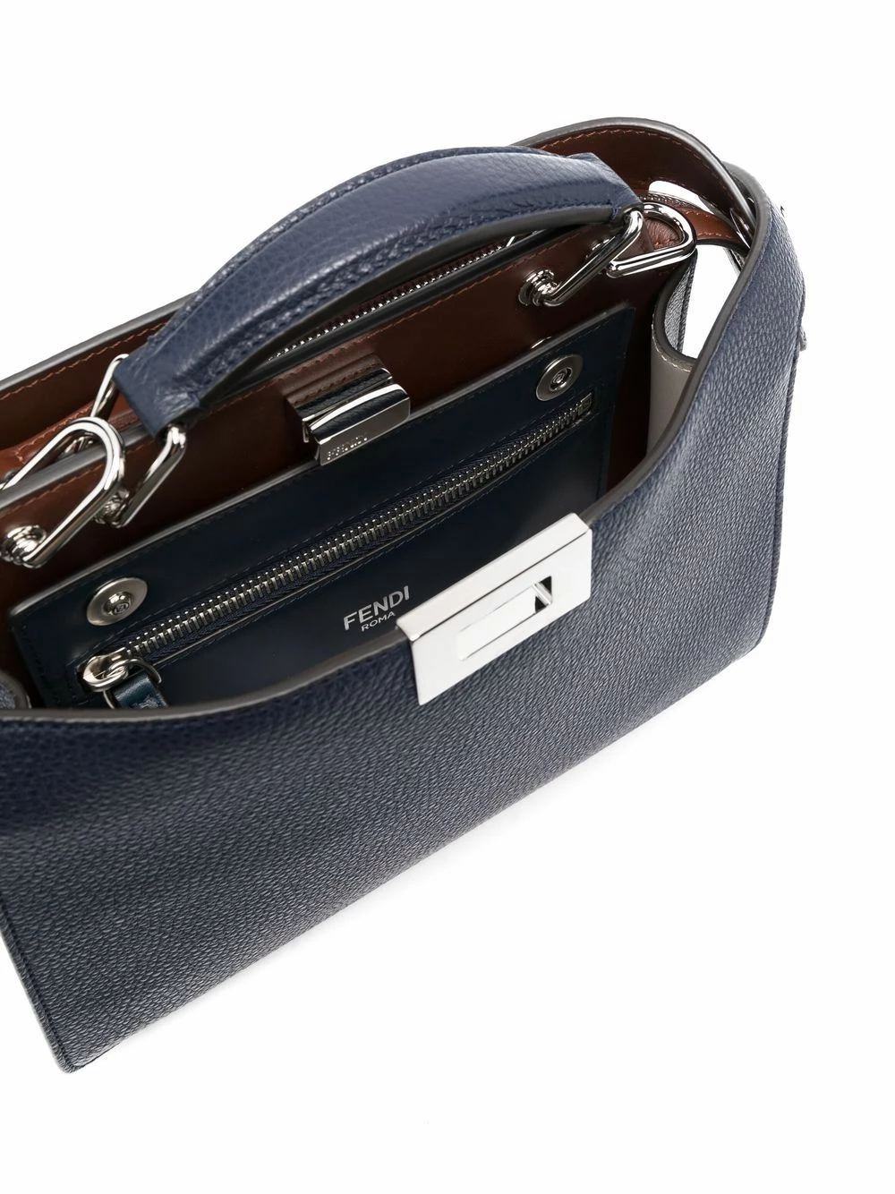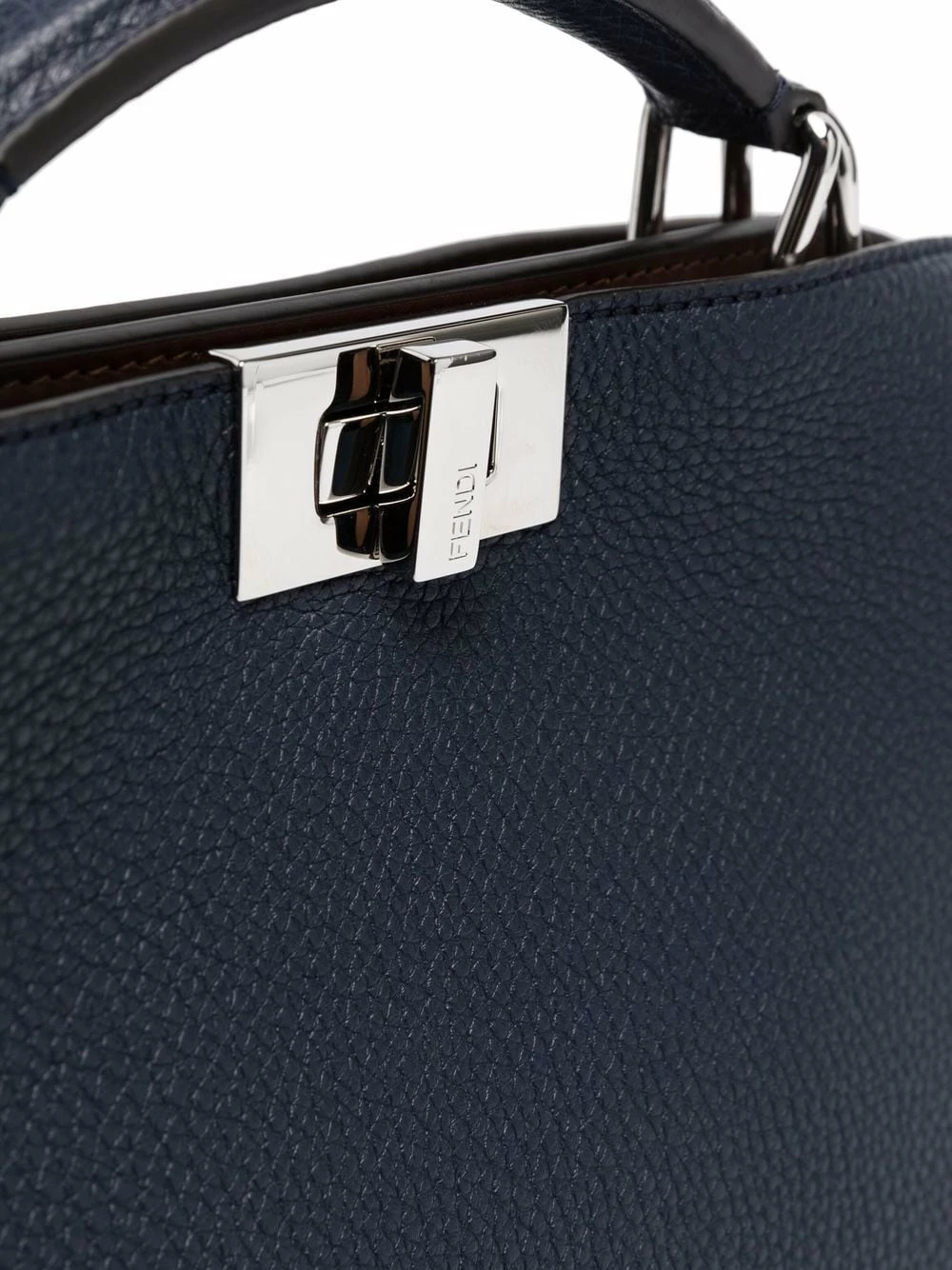 Made in Italy, Fendi’s Peekaboo tote bag is constructed from pebbled blue leather and displays a silver-tone twist-lock fastening towards the front. Storage space proves isn’t an issue with this accessory boasting partitioned compartments and an internal zip pocket.