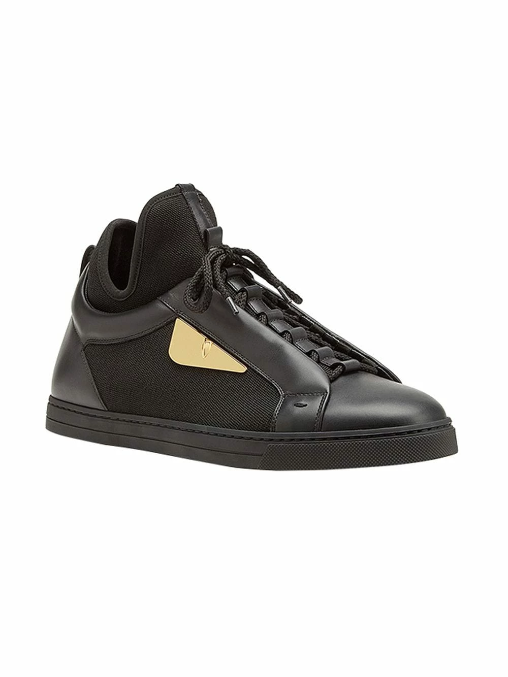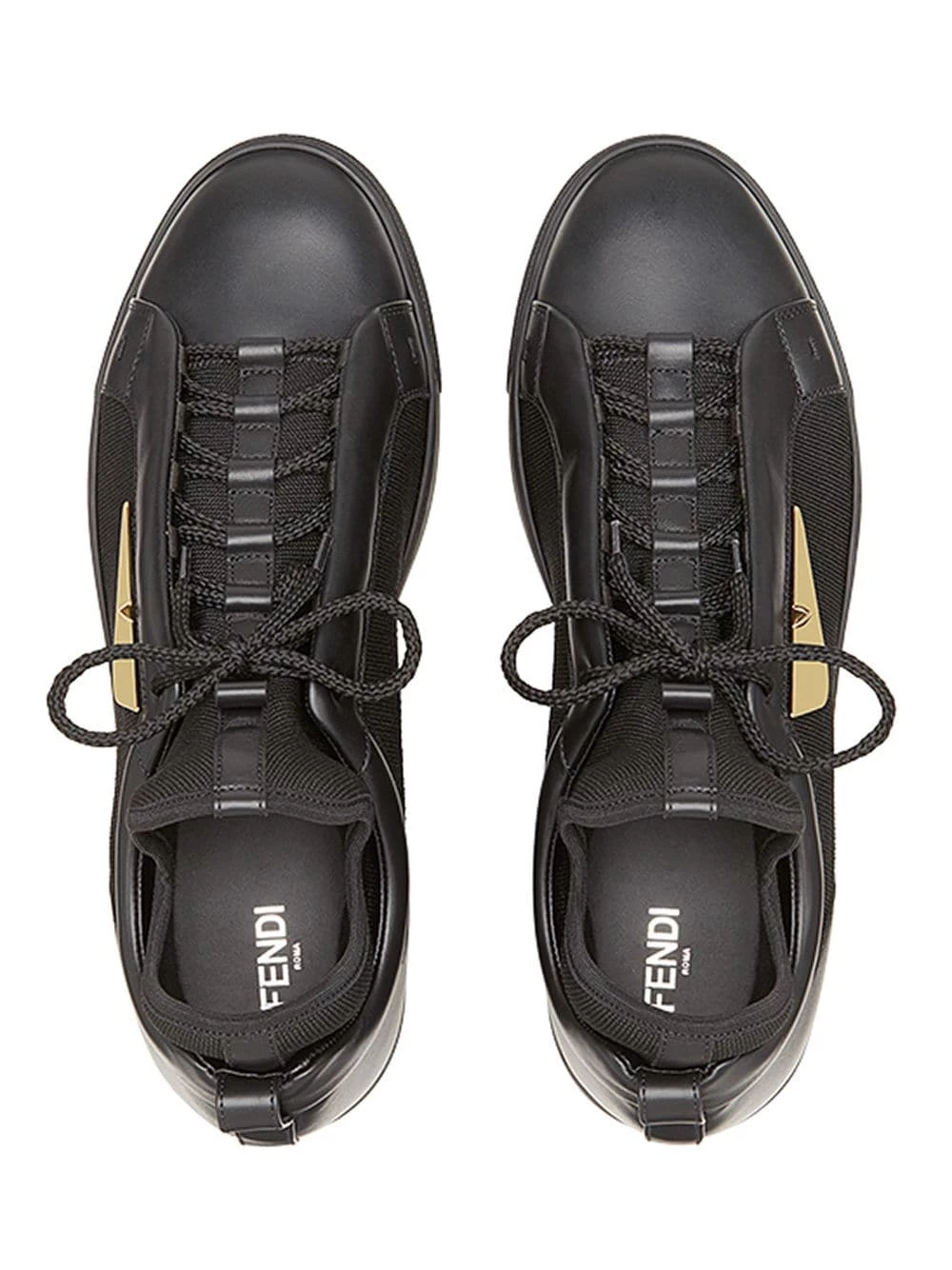 Established back in 1925, Italian fashion house Fendi never ceases to amaze the world with its style, elegance and impeccable sense of the ‘right now’. These black and gold-toned leather Bag Bugs eyes-appliqué sneakers are a staple piece and feature a round toe, a flat sole, a lace fastening, a gold-tone Bag Bugs eyes design and a branded insole.