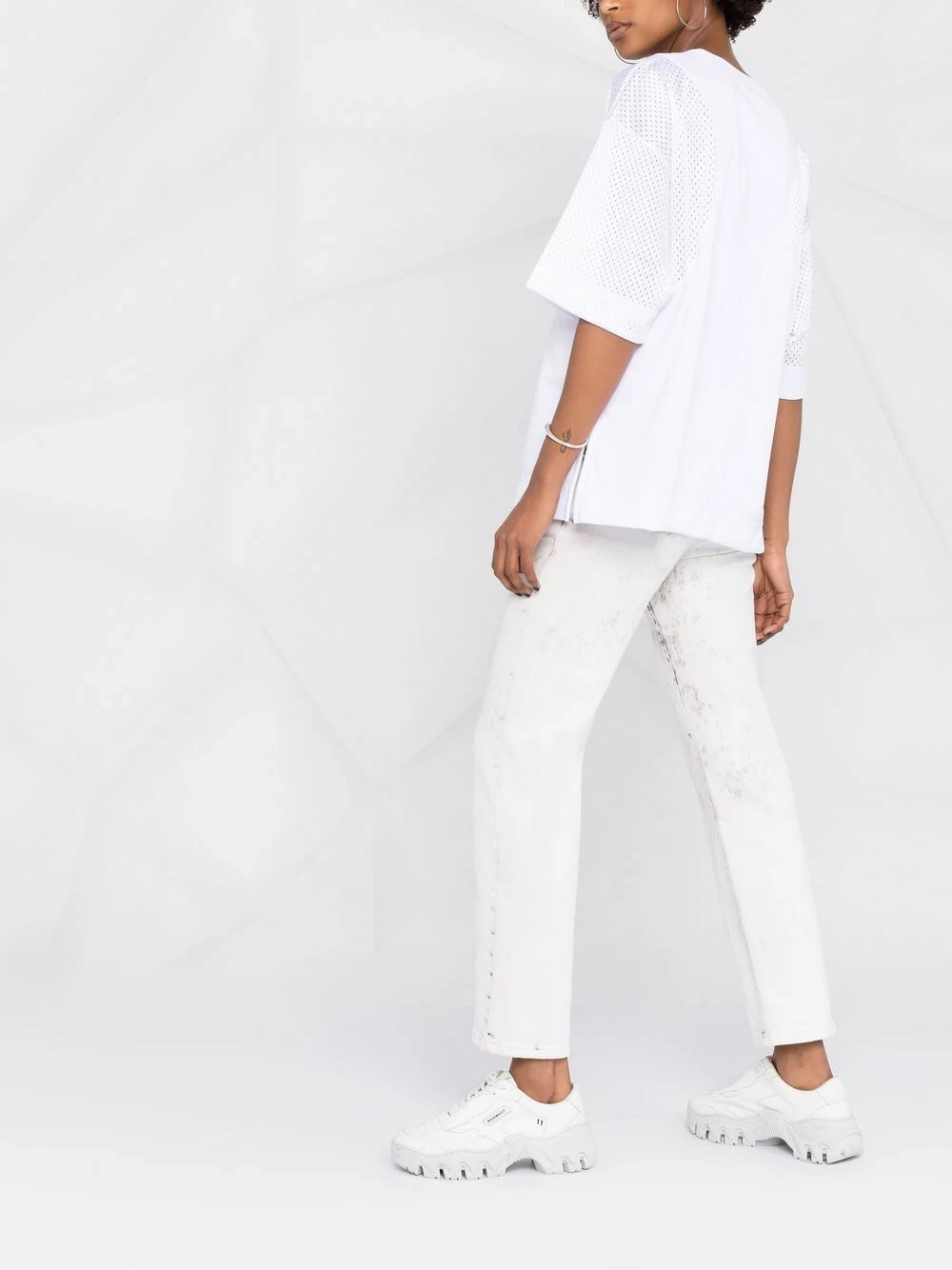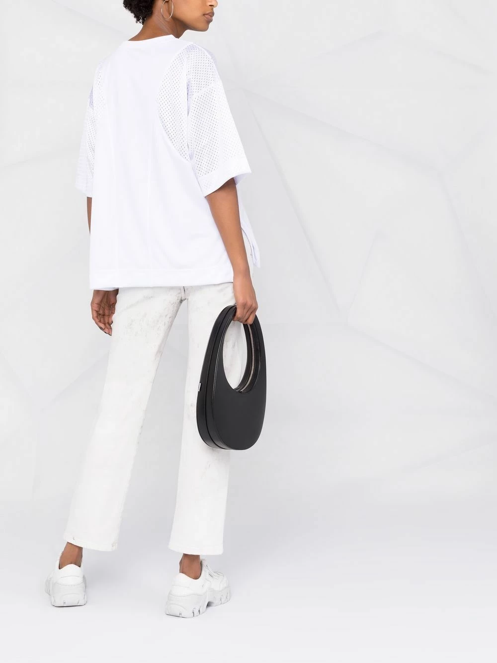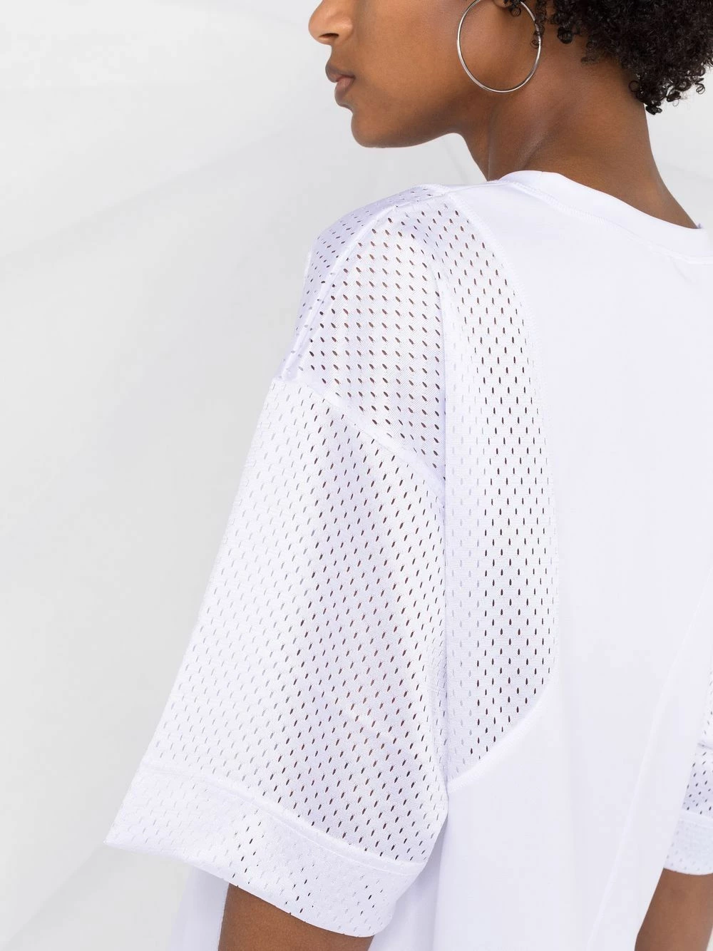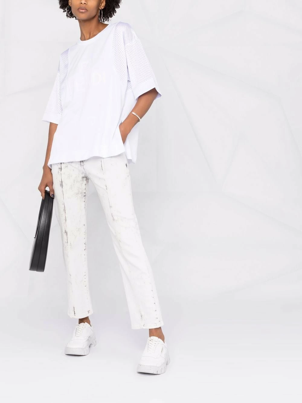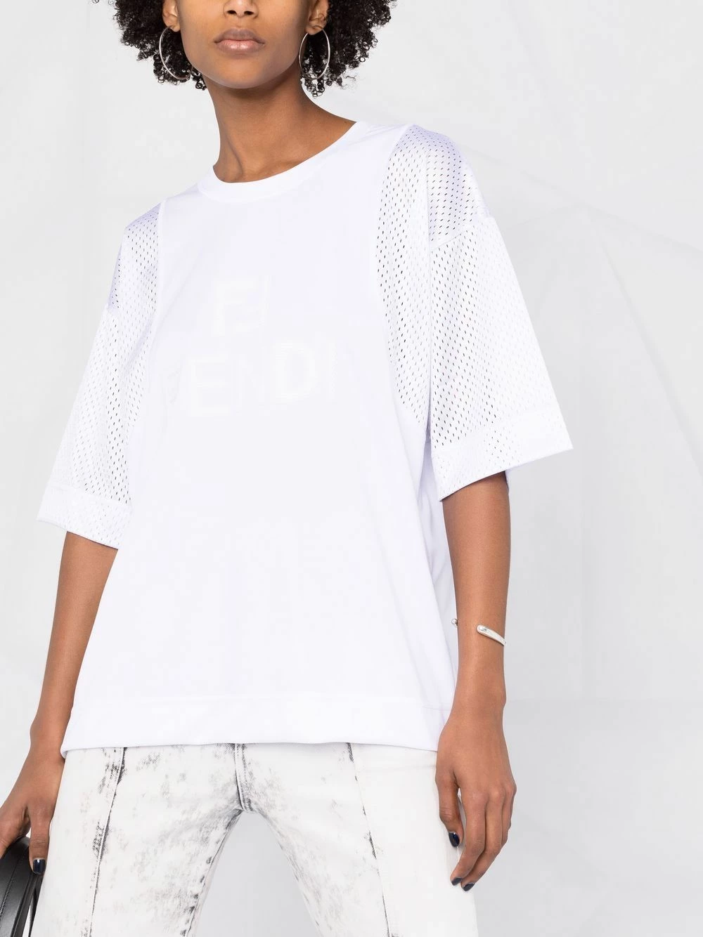 Forming part of a collection focusing on textures and materials more so than prints, this T-shirt from Fendi’s latest offering is simply detailed with mesh panelling to the shoulders. Presented in a crisp milk-white hue, its short-sleeved silhouette perfectly encapsulates the brand’s simplicity focused SS21.