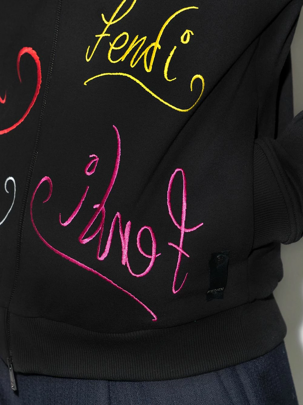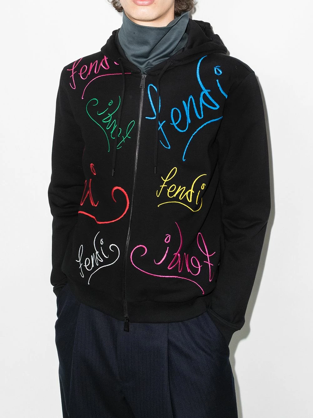 Fendi’s black cotton hoodie is decorated with an assortment of logo embroideries across its front. In a collaboration between artist Noel Fielding and Fendi, this zip-front hoodie will prove a versatile and timeless wardrobe staple.