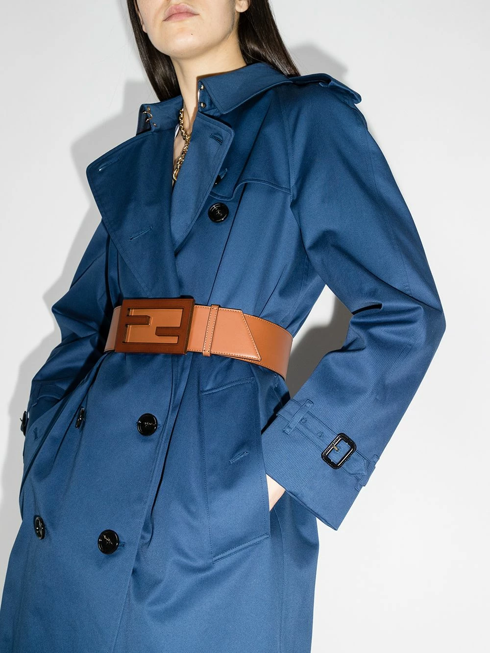 Relying on the house’s craftmanship and signature motifs, Fendi adds a touch of tradition to modern accessories for their SS21 collection. Embellished with a classic FF Baguette plaque at the front, this wide belt fastens at the front with a stud buckle and is finished with refined gold-tone hardware.
