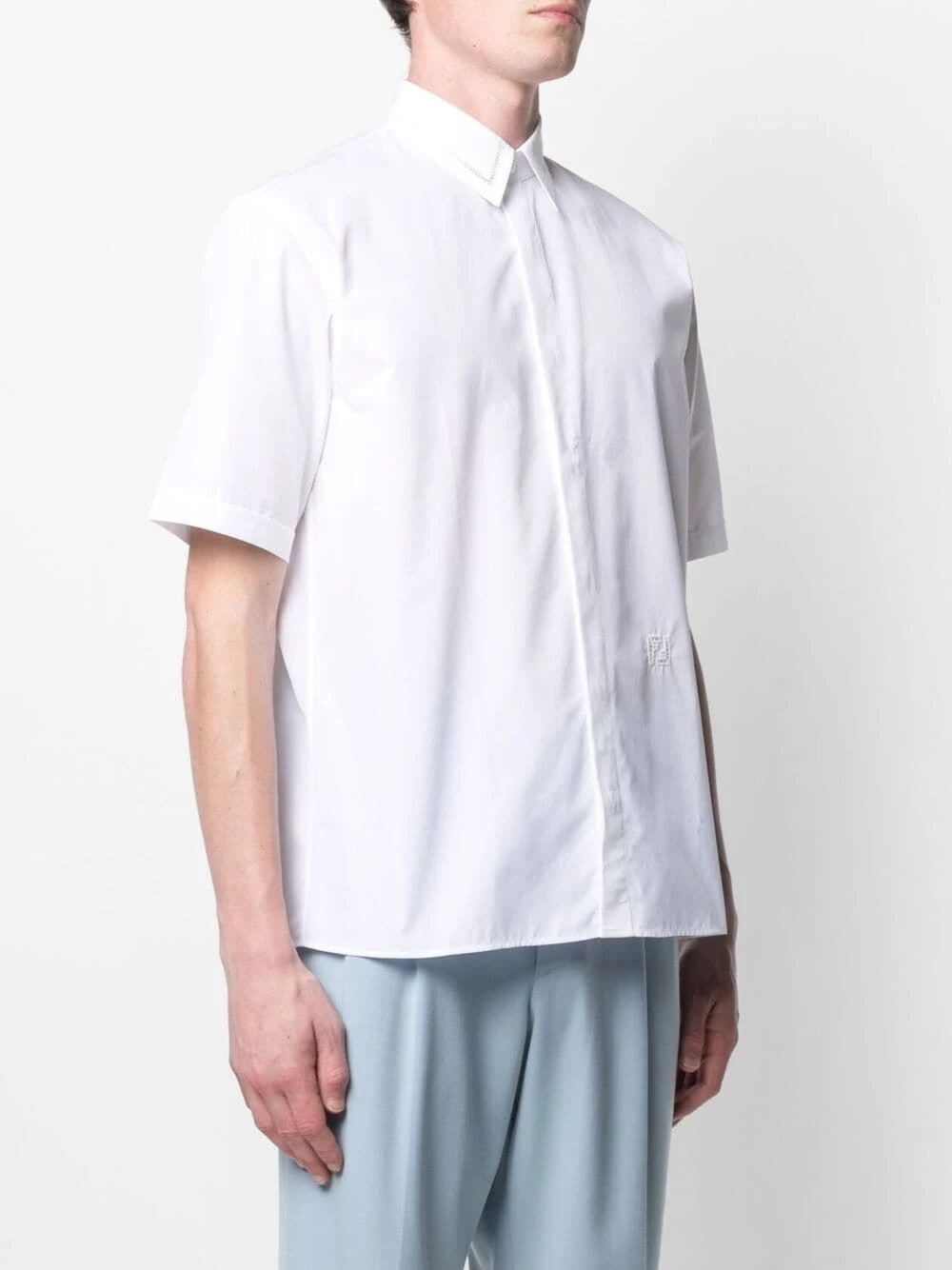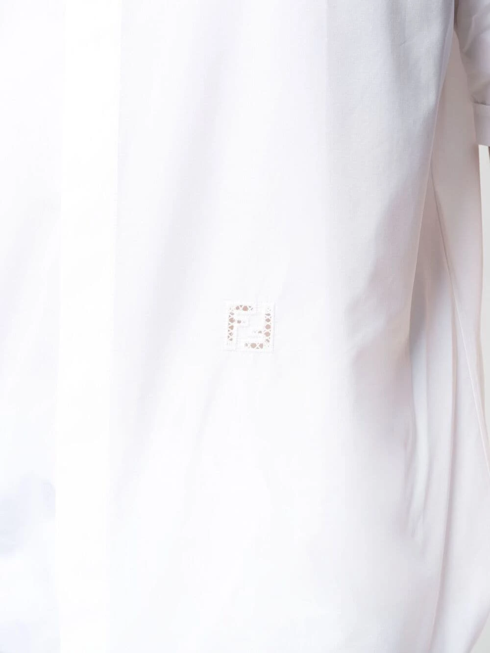 Put a spin on your smart-wear options with Fendi. This white cotton shirt is accented with broderie detailing for a charming finish. Shirting with a difference.