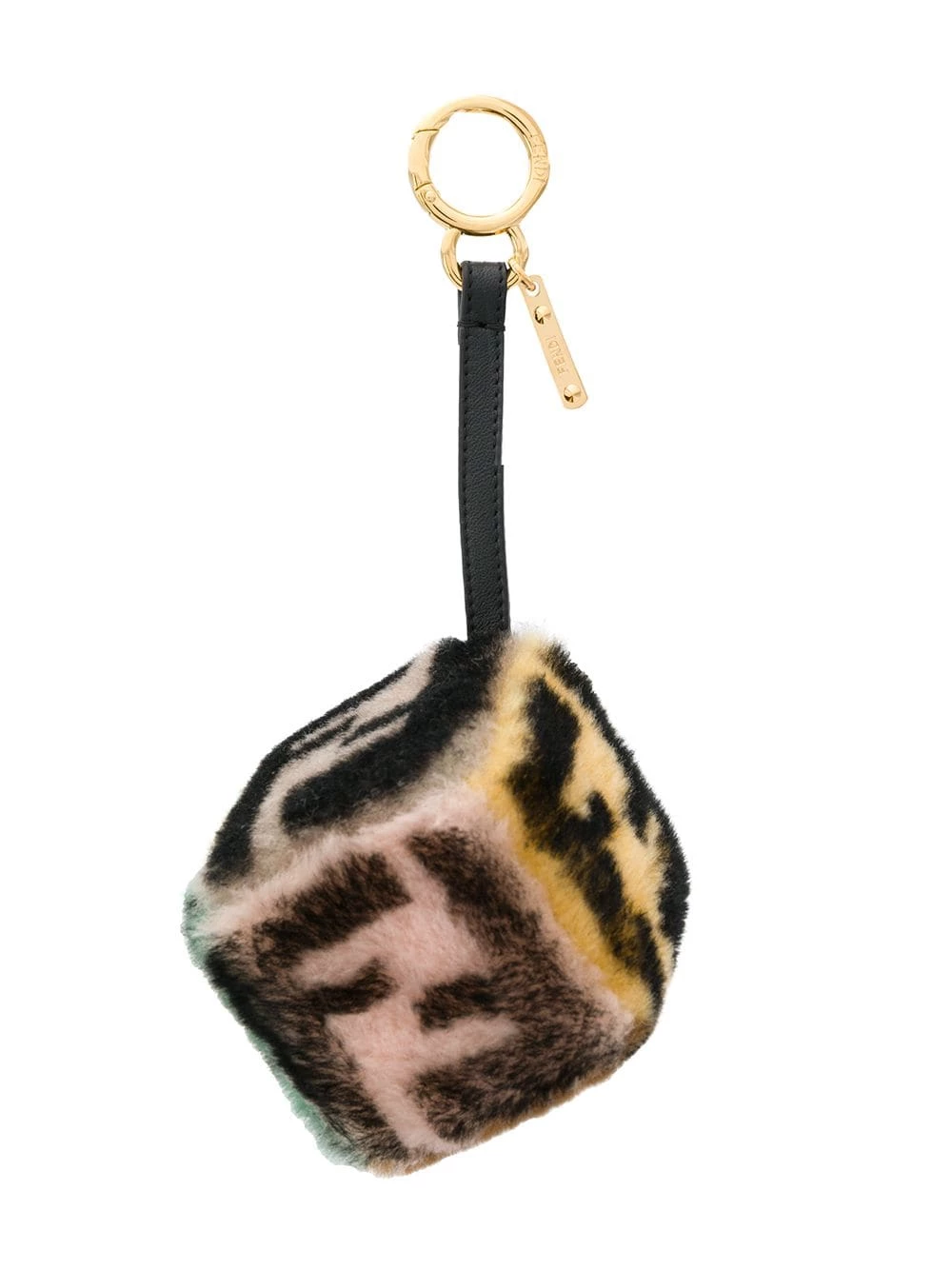 Fendi’s charms are the perfect juxtaposition between fun and fashion. Realised in kaleidoscopic tones and constructed from a variety of furs; the pieces are ideal for injecting a pop of colour to keys or handbags. This black and brown shearling Cube bag charm is a must-have accessory piece this AW18 and features a spring-ring fastening, a signature FF logo design and a cube shape.