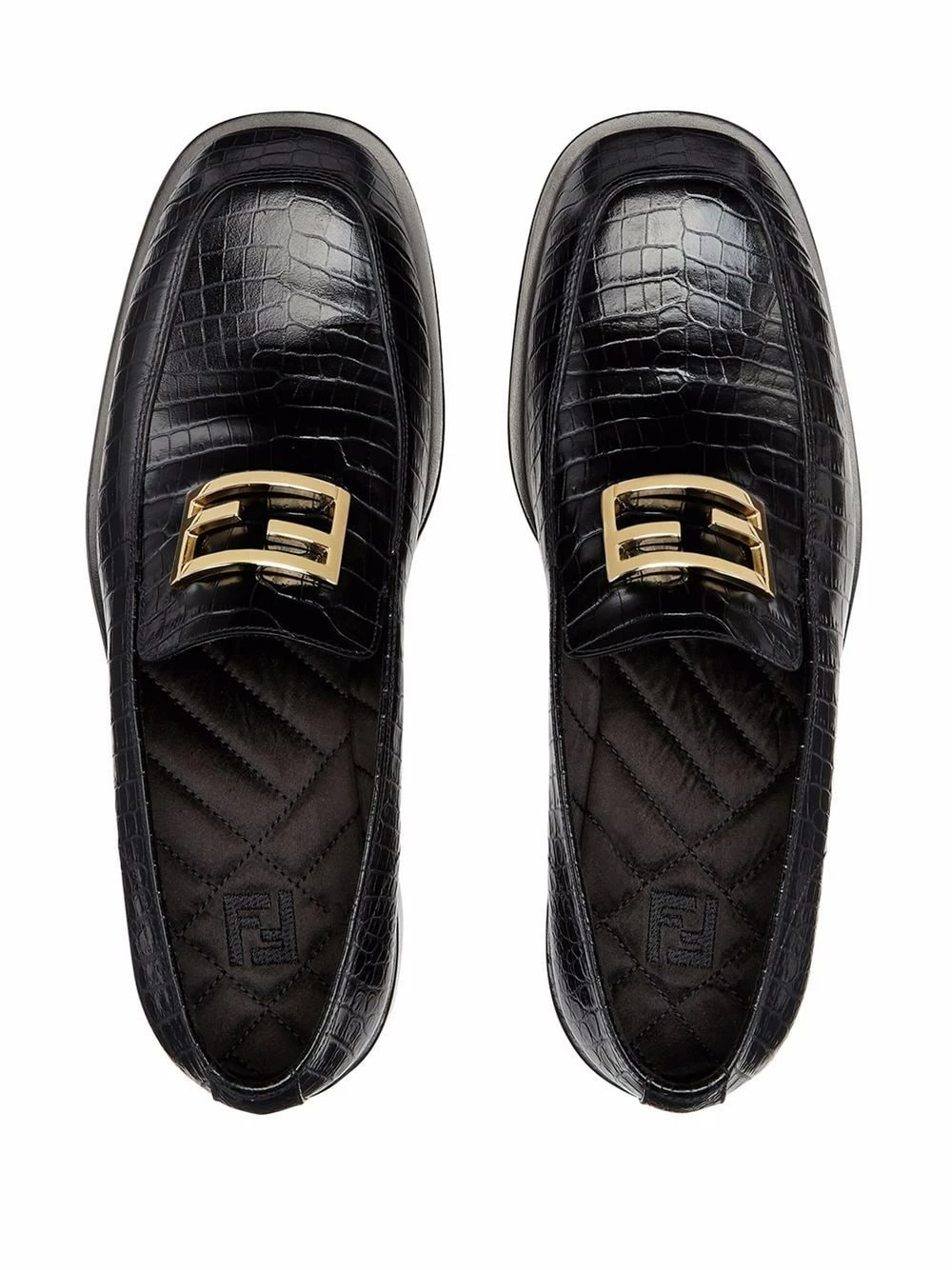 A crocodile-effect finish and gold-tone FF Baguette motif combine here to create an opulent look. Sitting atop a non-slip rubber sole, this pair showcases Fendi’s focus on craftsmanship.