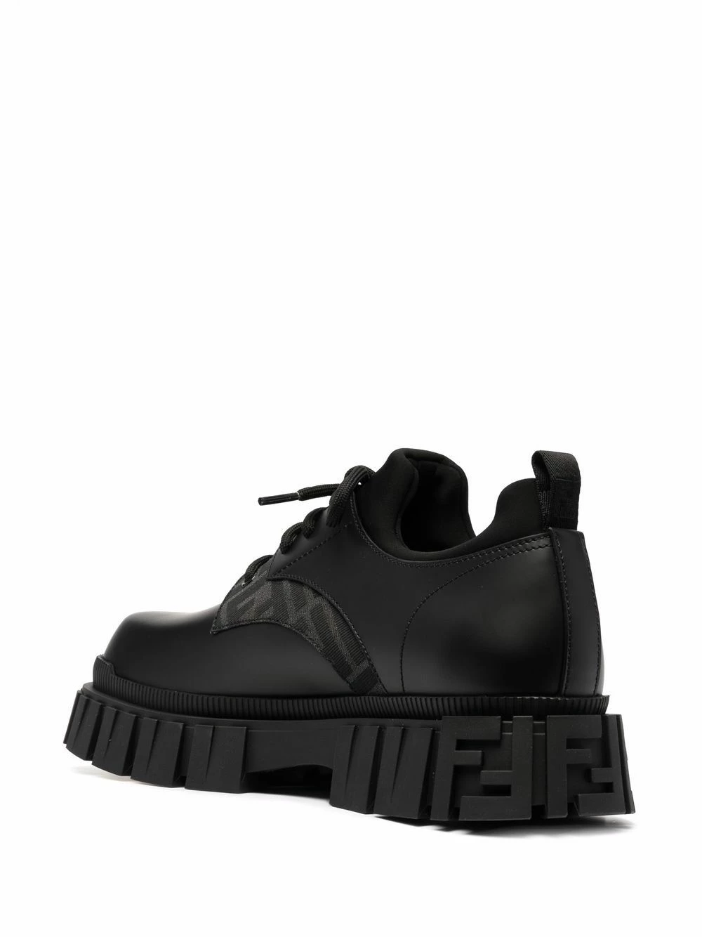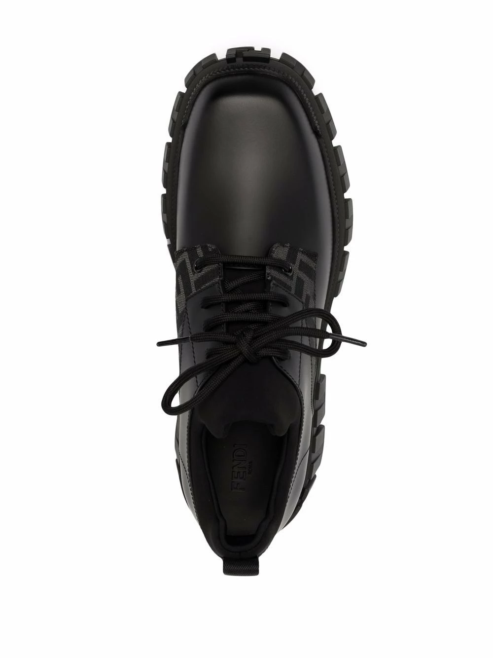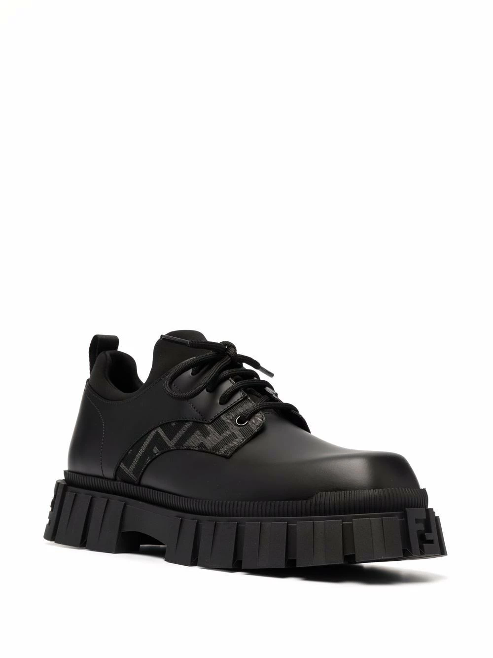 FENDI’s lace-up brogues are presented in a panelled design with a monogram motif section at the front. Set upon a chunky rubber sole, they display embossed FF detail incorporated into the ridges of the heel.