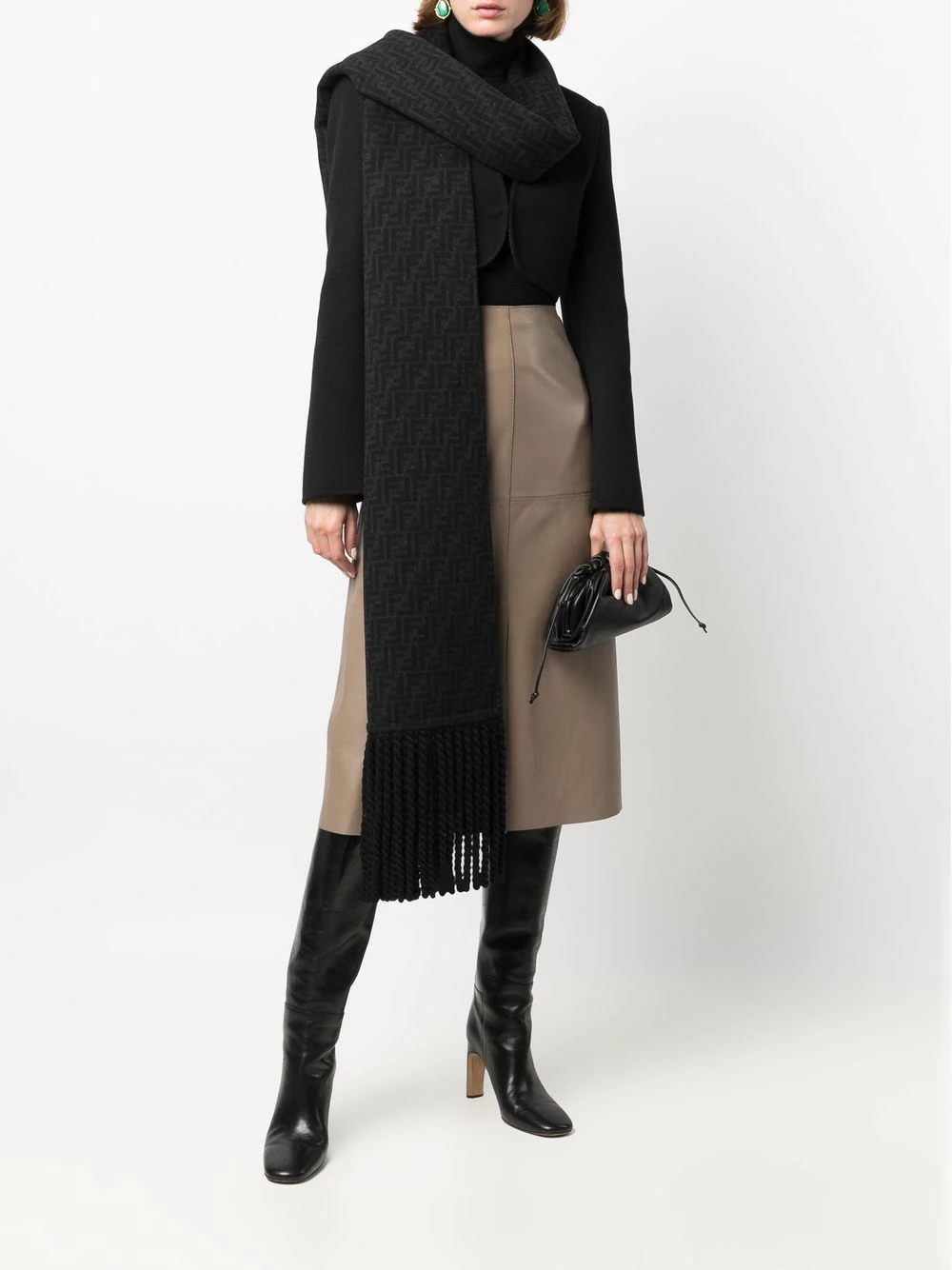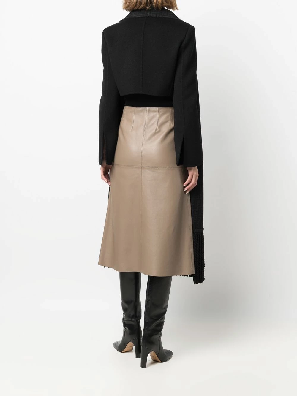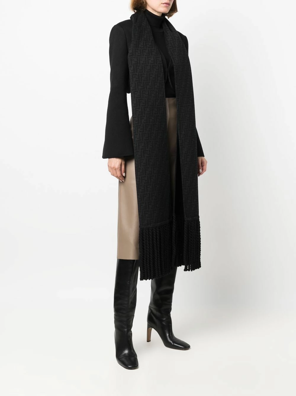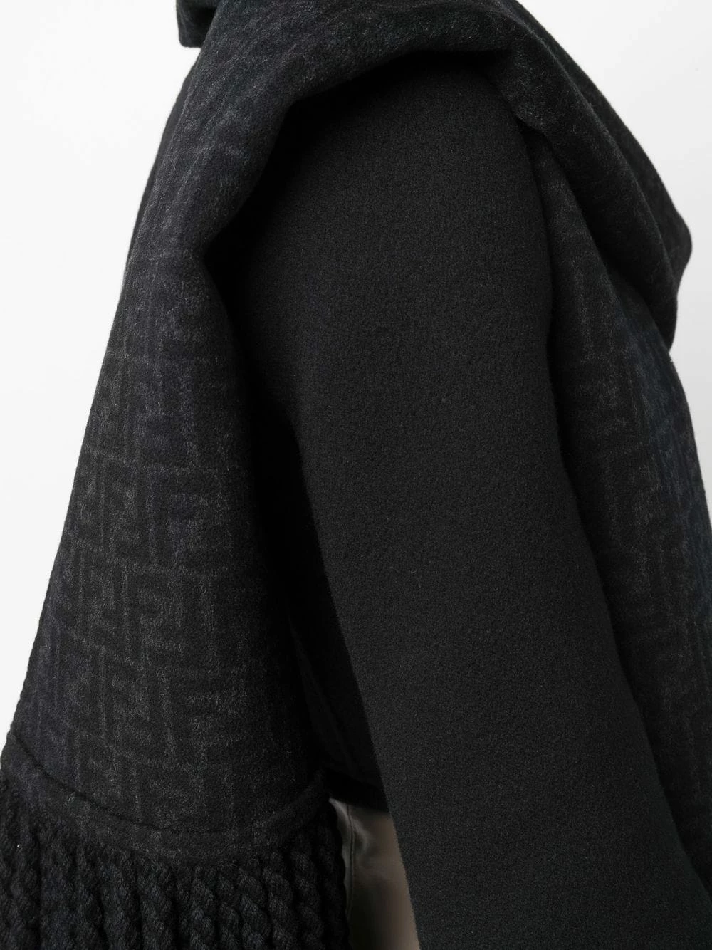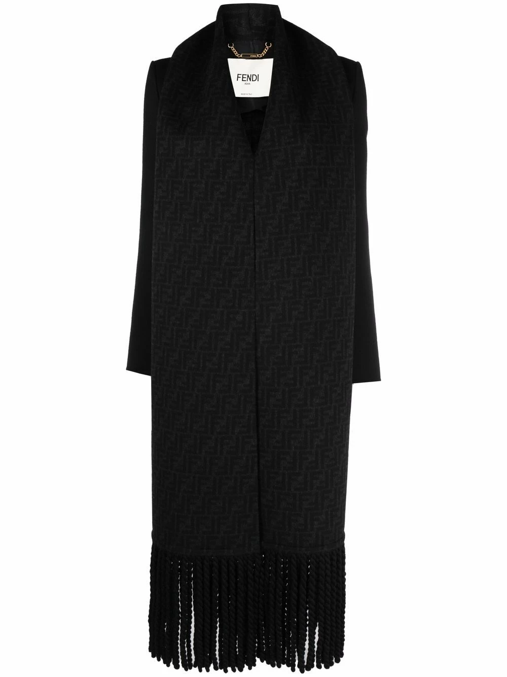 Fendi delves into versatility with this black Giacca jacket from the AW21 collection. Defined by its detachable tassel-edge scarf, this jacket can be worn in a manner of different ways and still look sleek with its padded shoulder silhouette.