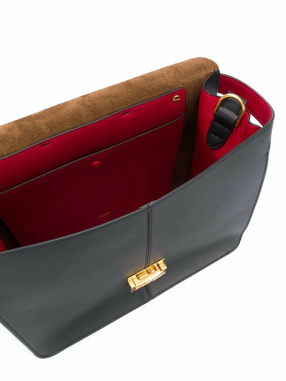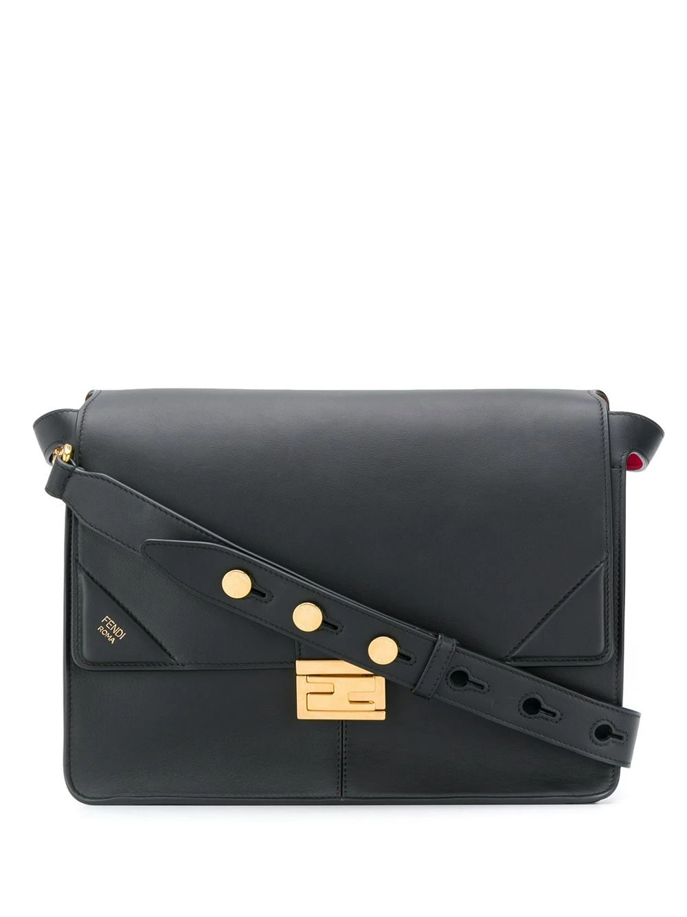 Since its inception, fashion powerhouse Fendi has transformed into an Italian luxury brand that is undoubtedly famous for its premium and stylish bags and bag accessories. Case in point: this black calf leather large Kan U shoulder bag. Featuring an adjustable shoulder strap, a foldover top with clasp closure, gold-tone hardware, a main internal compartment and an internal slip pocket.