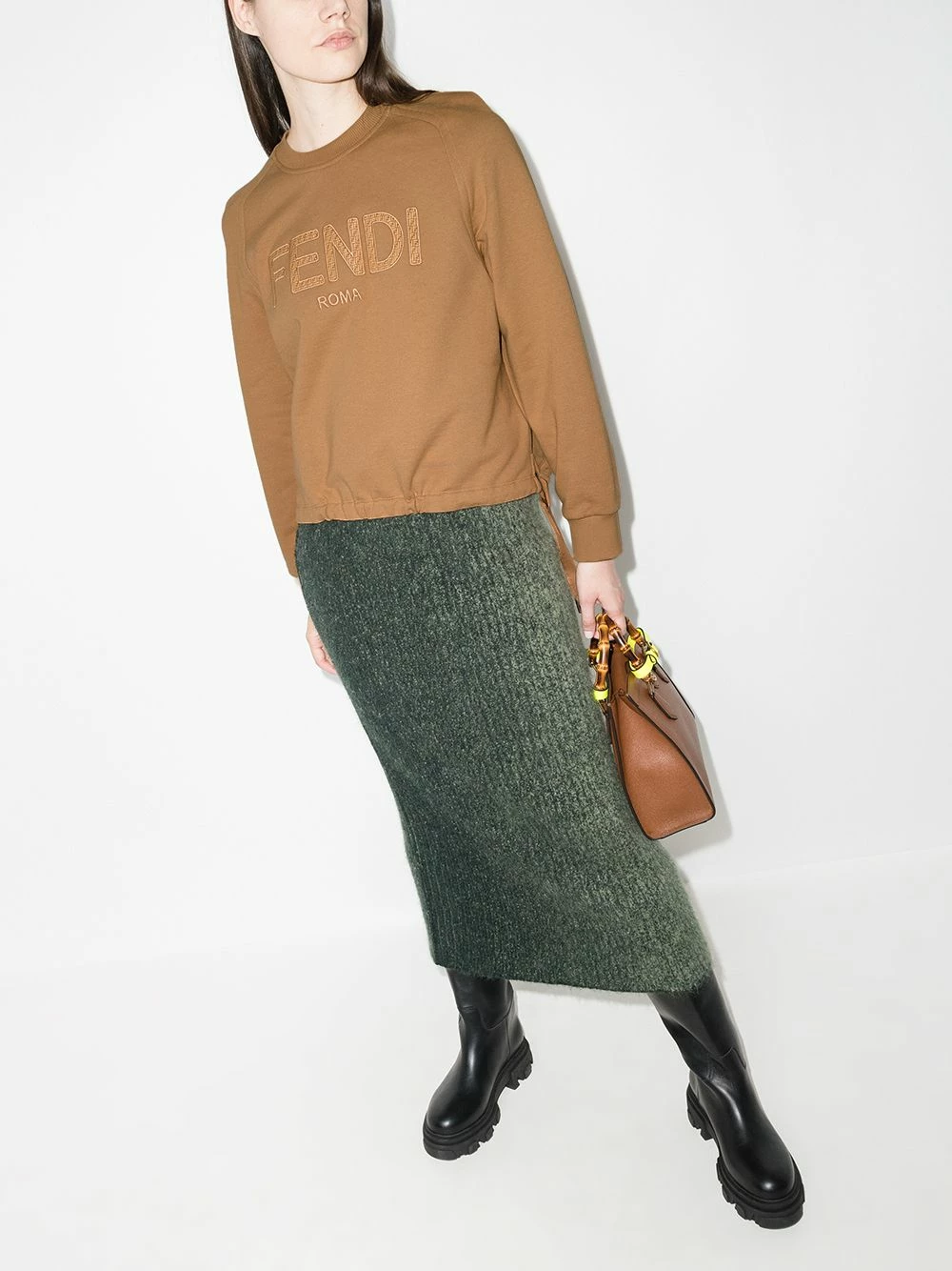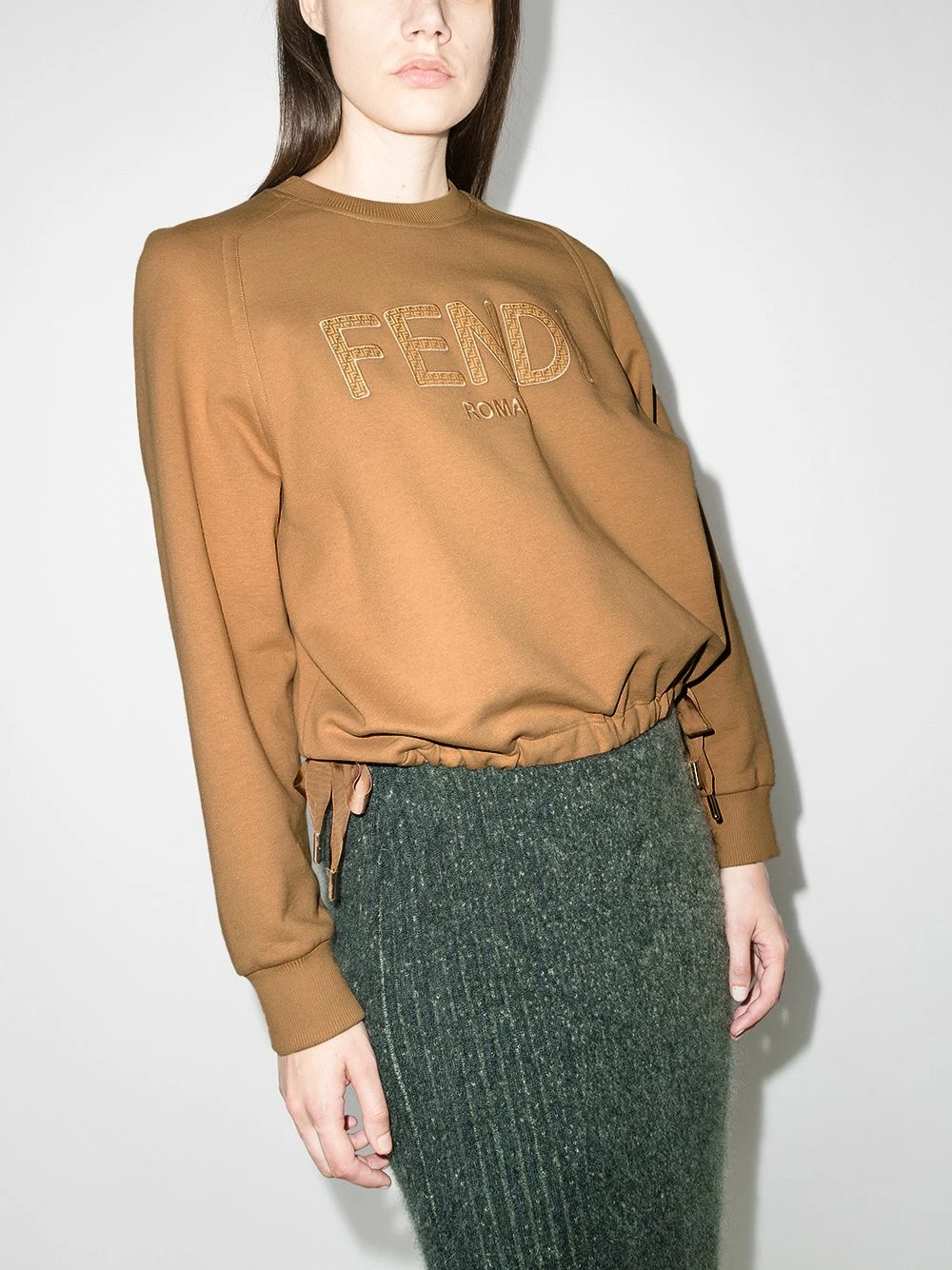 A tonal design allows for a versatile look for this Fendi sweatshirt. Branding is kept subtle in keeping with the understated style, with an embroidered logo appearing at the front.