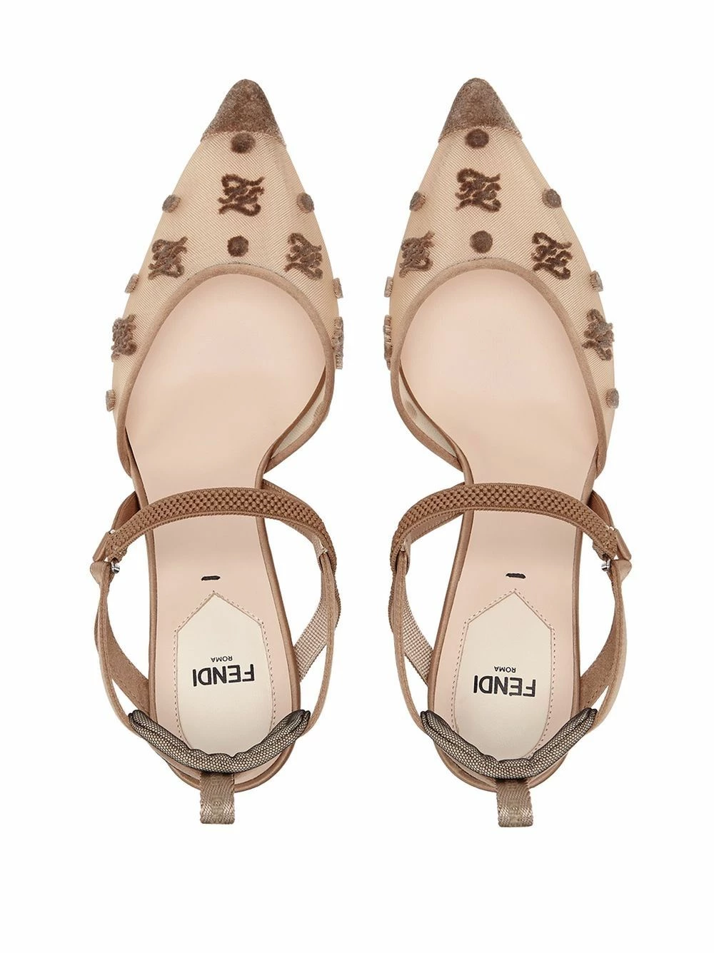 In a new take on the Fendi’s signature FF monogram, it is embroidered into mesh panelling at the front of these pointed-toe pumps. In a tonal colourway they have a refined and timeless feel.Β