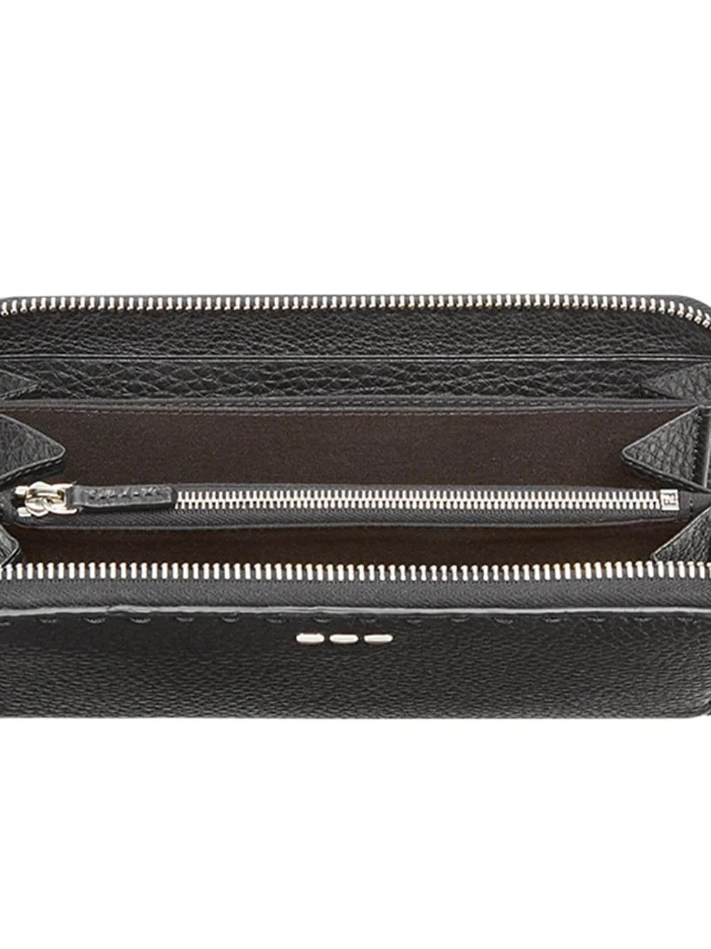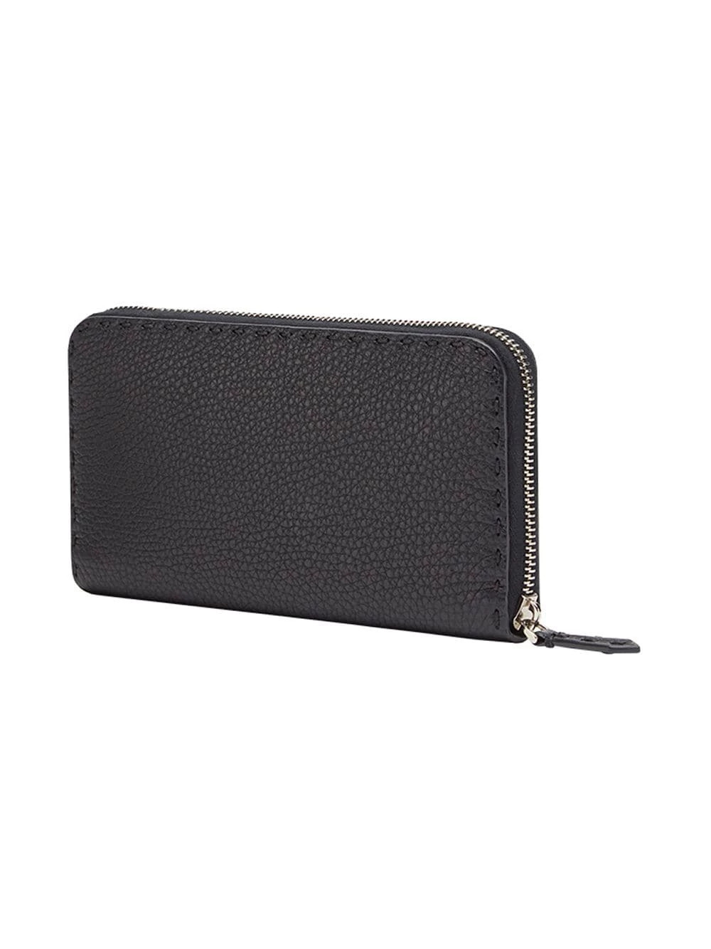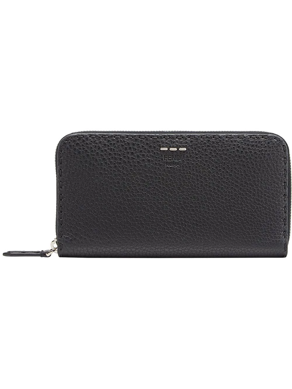 Italian fashion house Fendi is famed for its covetable collectibles like this Selleria continental wallet fresh out of the labelβs SS18 collection. Masterfully crafted from black calf leather, this wallet features an all around zip fastening, a front embossed logo stamp, a pebbled leather texture, multiple interior card slots and an internal zipped pocket.