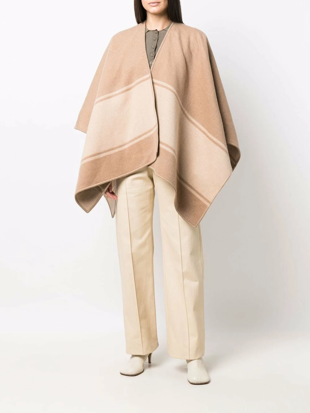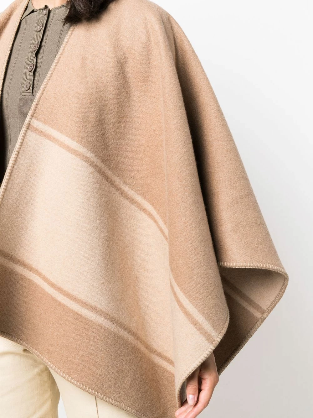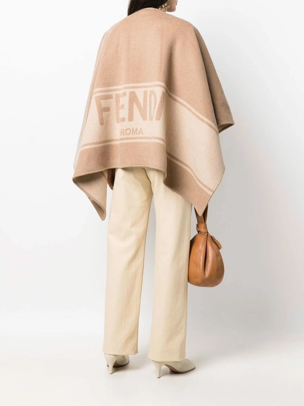 Fendi provides comfort with this stripe detail logo cape that boasts a large and draped silhouette that’s constructed from camel beige cashmere-wool blend.
