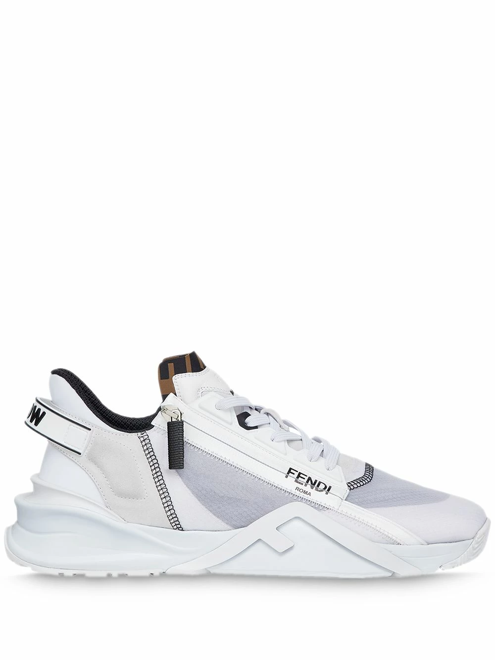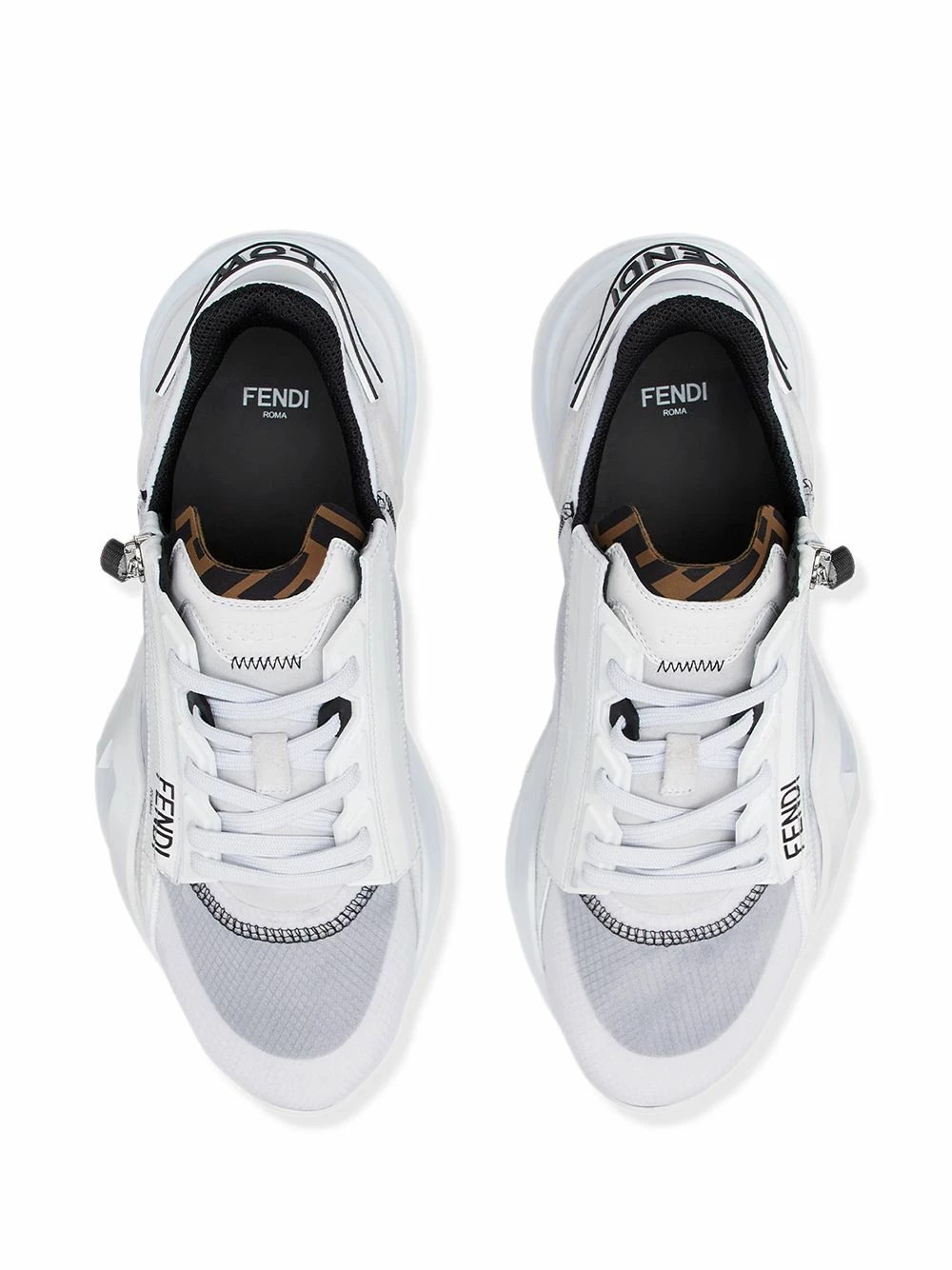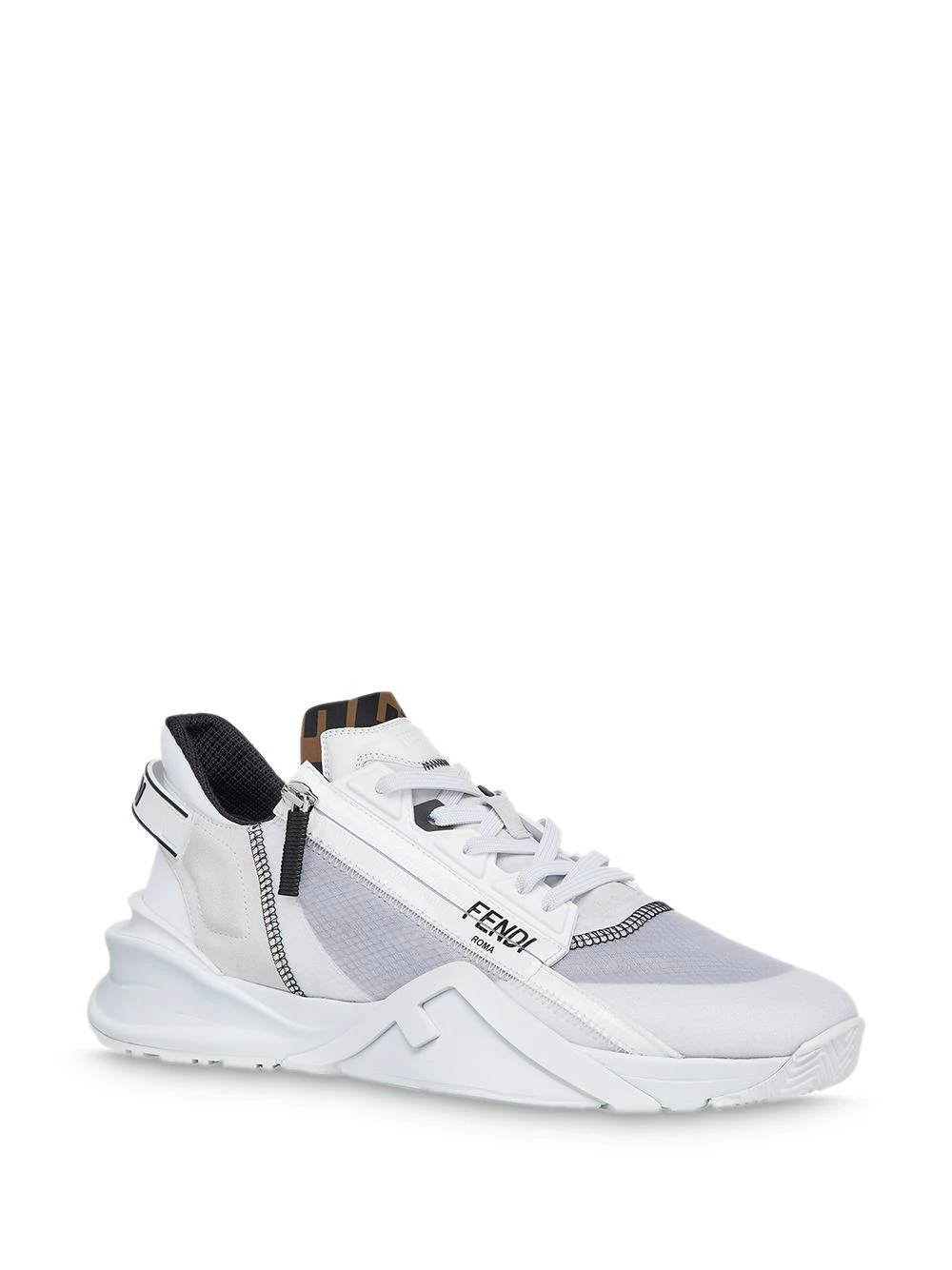Sporty style is in. So get ahead of the curve with these white calf leather zip running style sneakers from Fendi. Look cool without getting a sweat on.