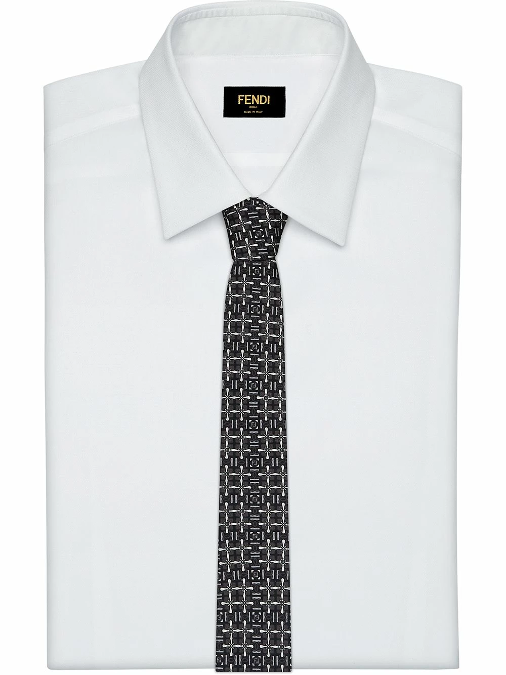 A good tie can make the difference between a good or bad first impression – luckily for you, Fendi’s got you covered. Cut from lustrous silk, it’s accented with a check and logo jacquard patterns all over. Mission accomplished.Β