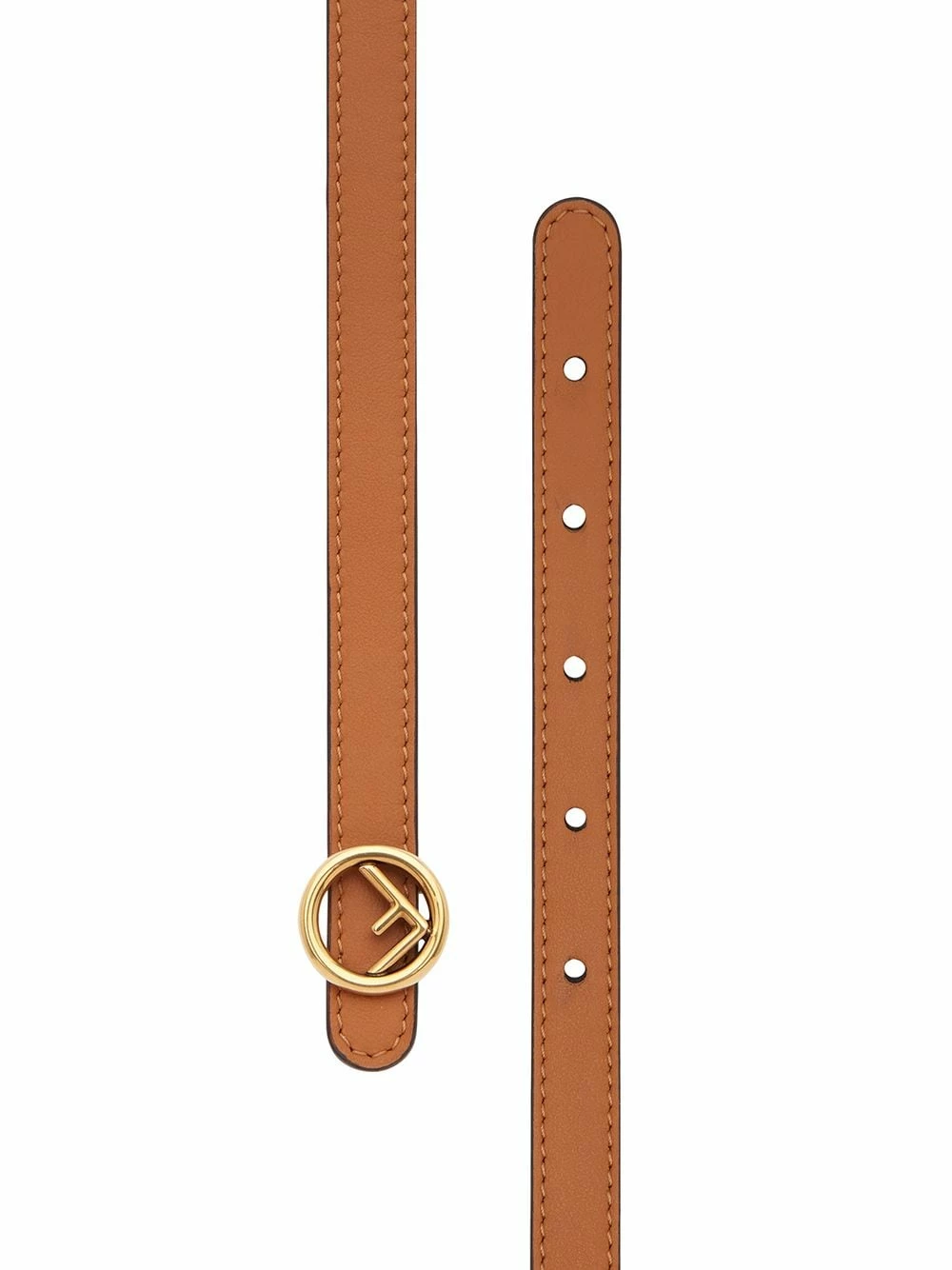 Buckle up with this camel-tone calf leather F logo belt from Fendi and enjoy the ride – or the walk. It really is up to you. Featuring an adjustable fit, punch hole detailing, gold-tone hardware and an F logo buckle.