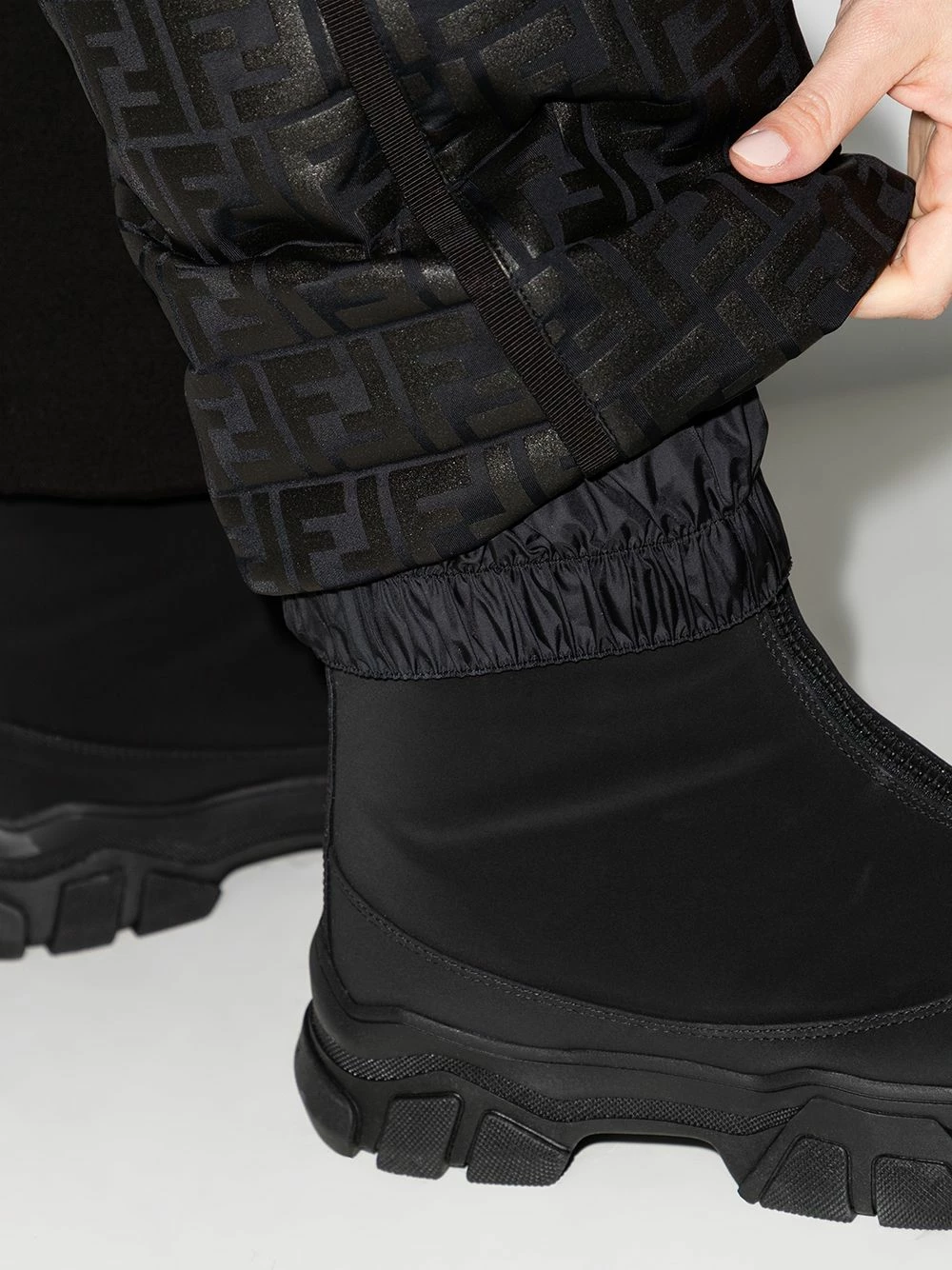 Fendi’s bold approach to the logomania trend meets functionality with these ski trousers. Detailed with elasticated ankles, this pair is adorned with an all-over FF motif.